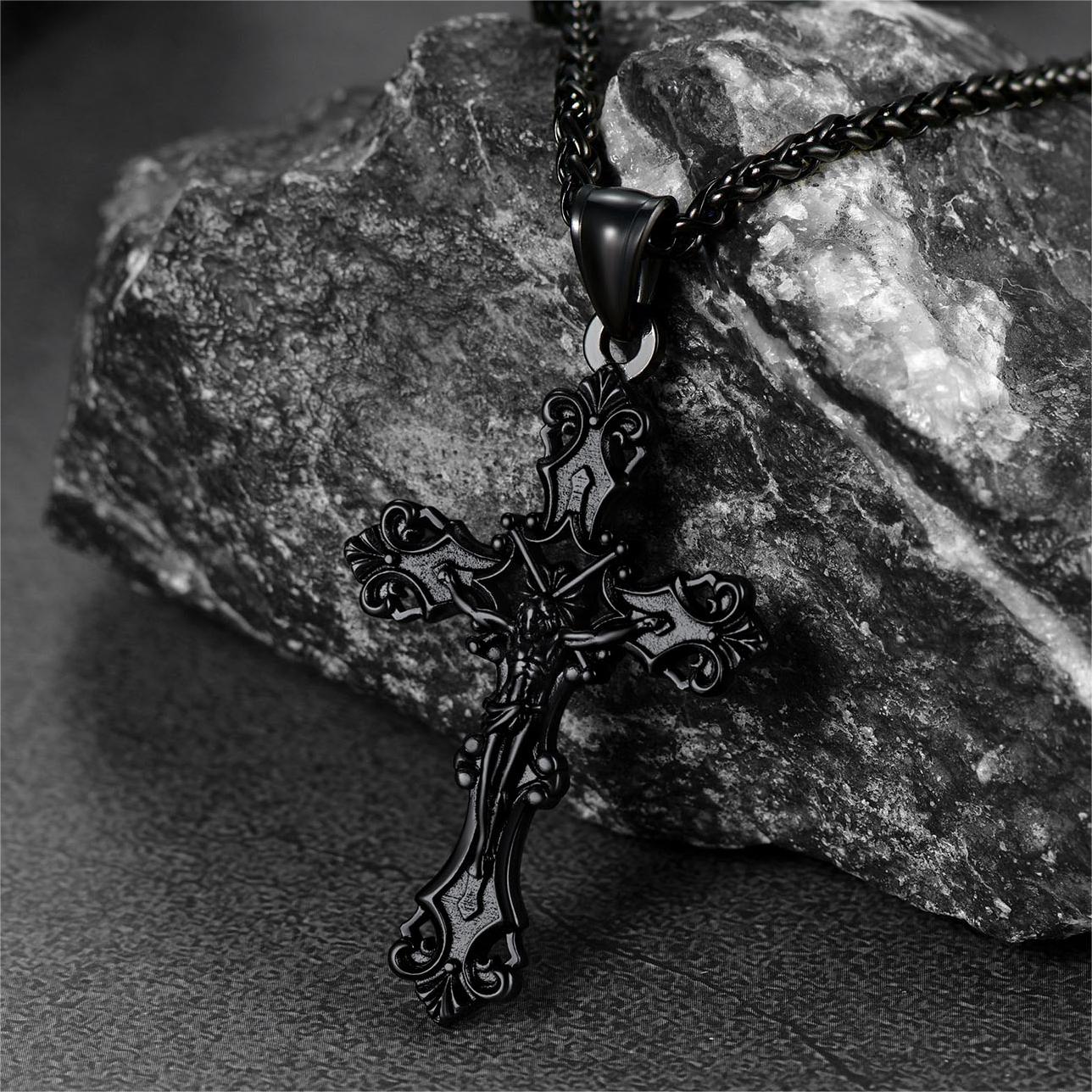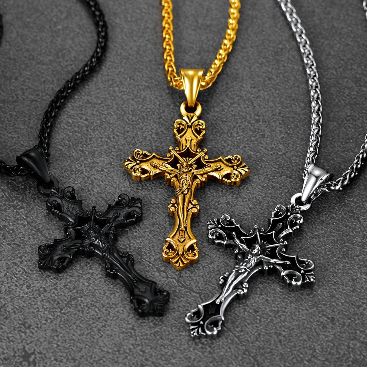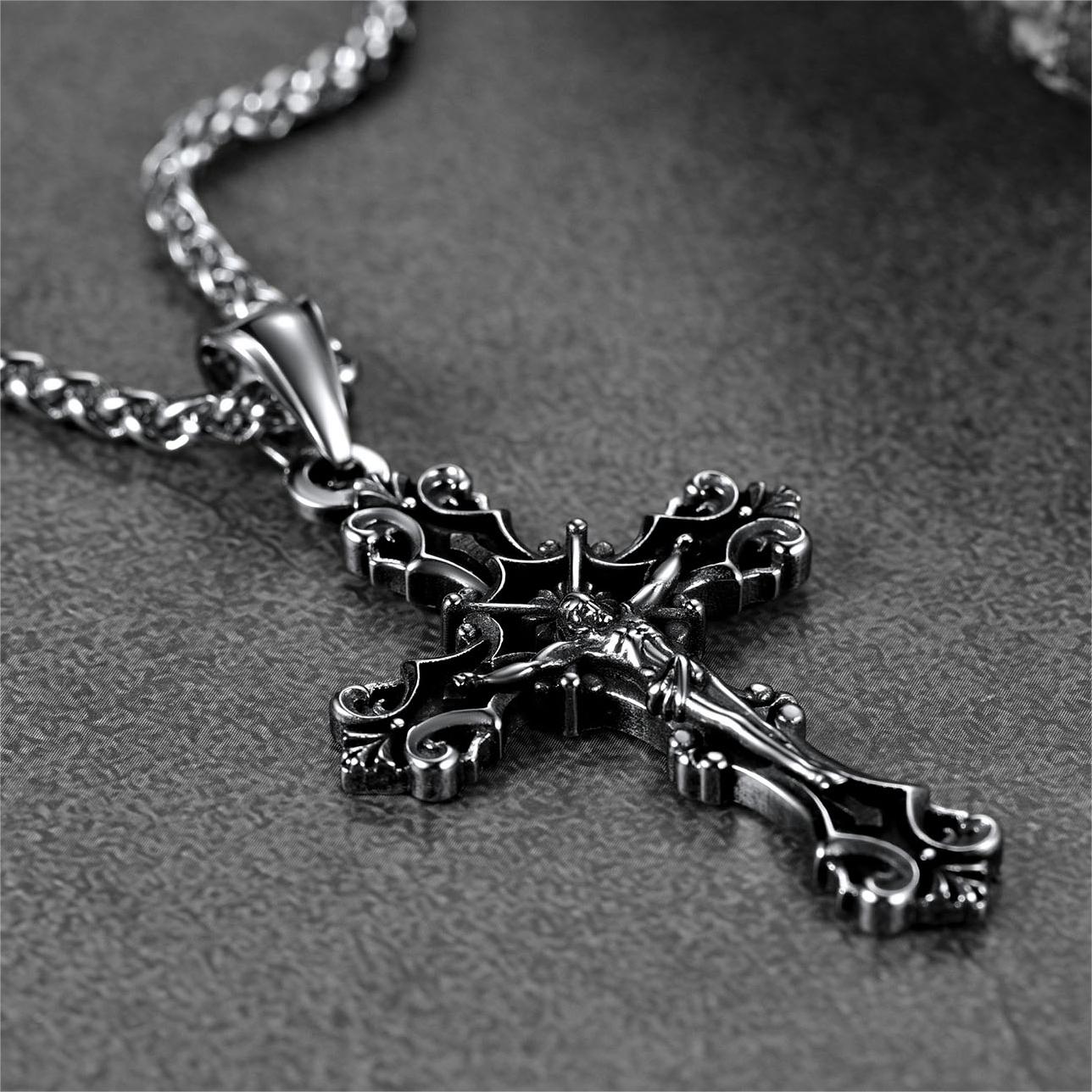 Colar vintage com crucifixo para homens, exiba sua fé onde quer que vá. Feito de aço inoxidável 316L, que durará muito tempo. Embalado em uma caixa delicada. Uma joia inspiradora com um crucifixo para familiares ou amigos que estão passando por momentos difíceis.