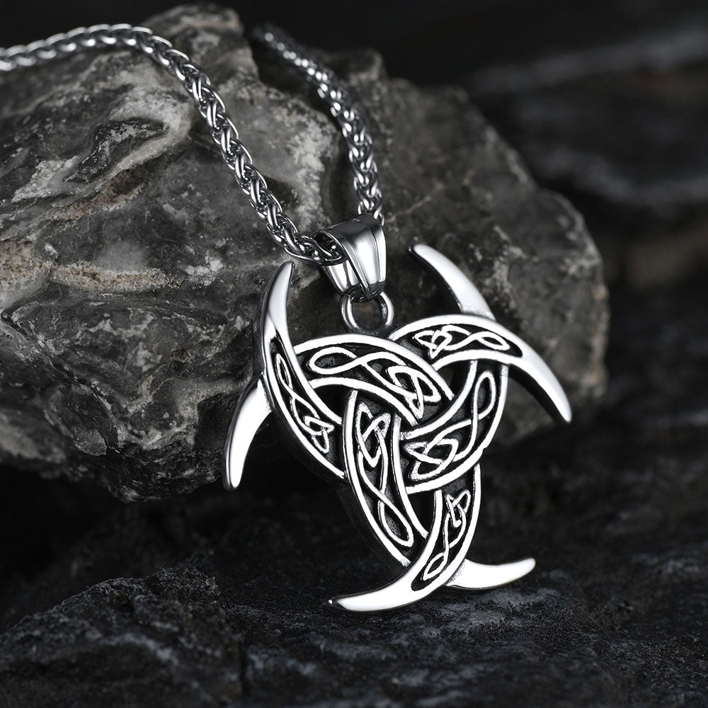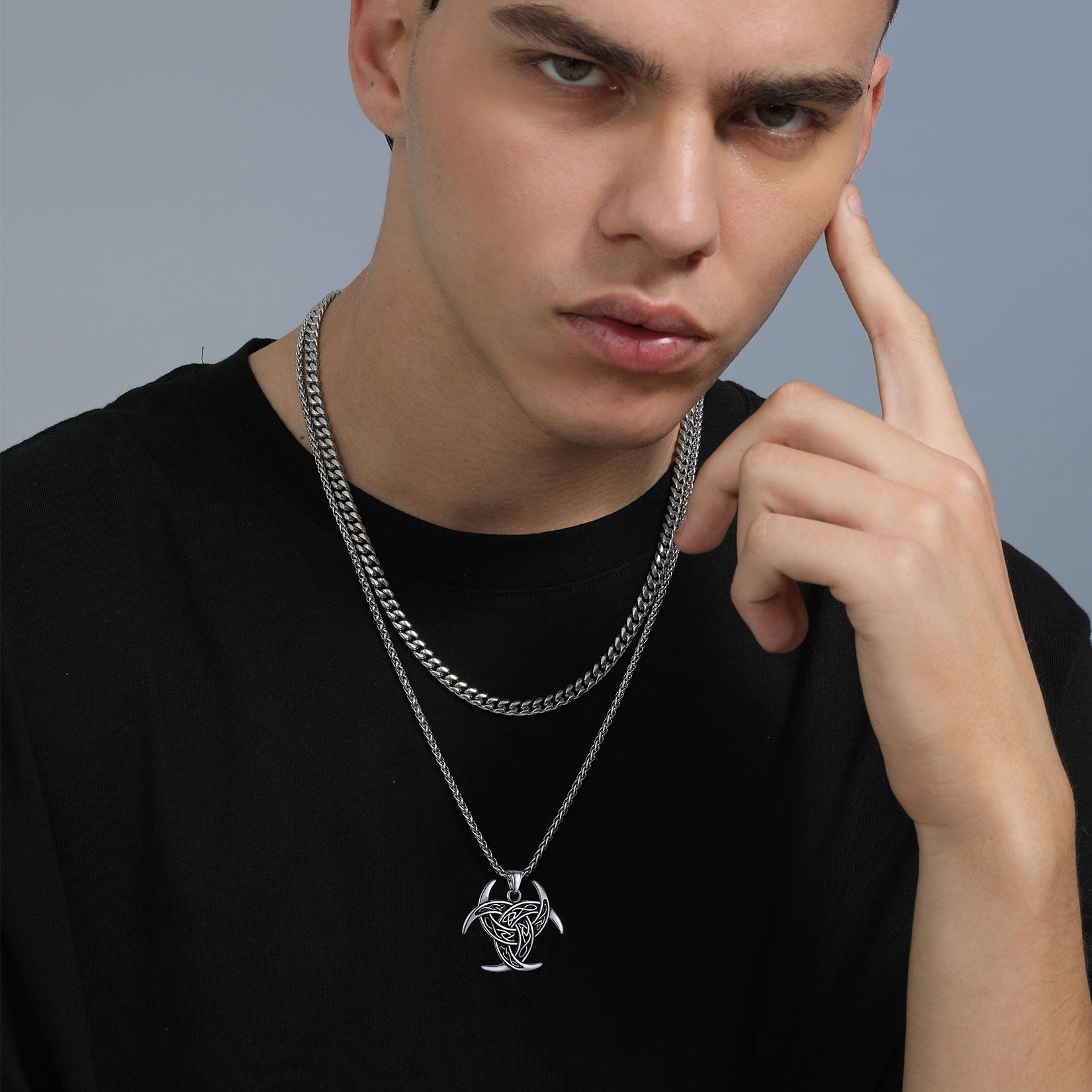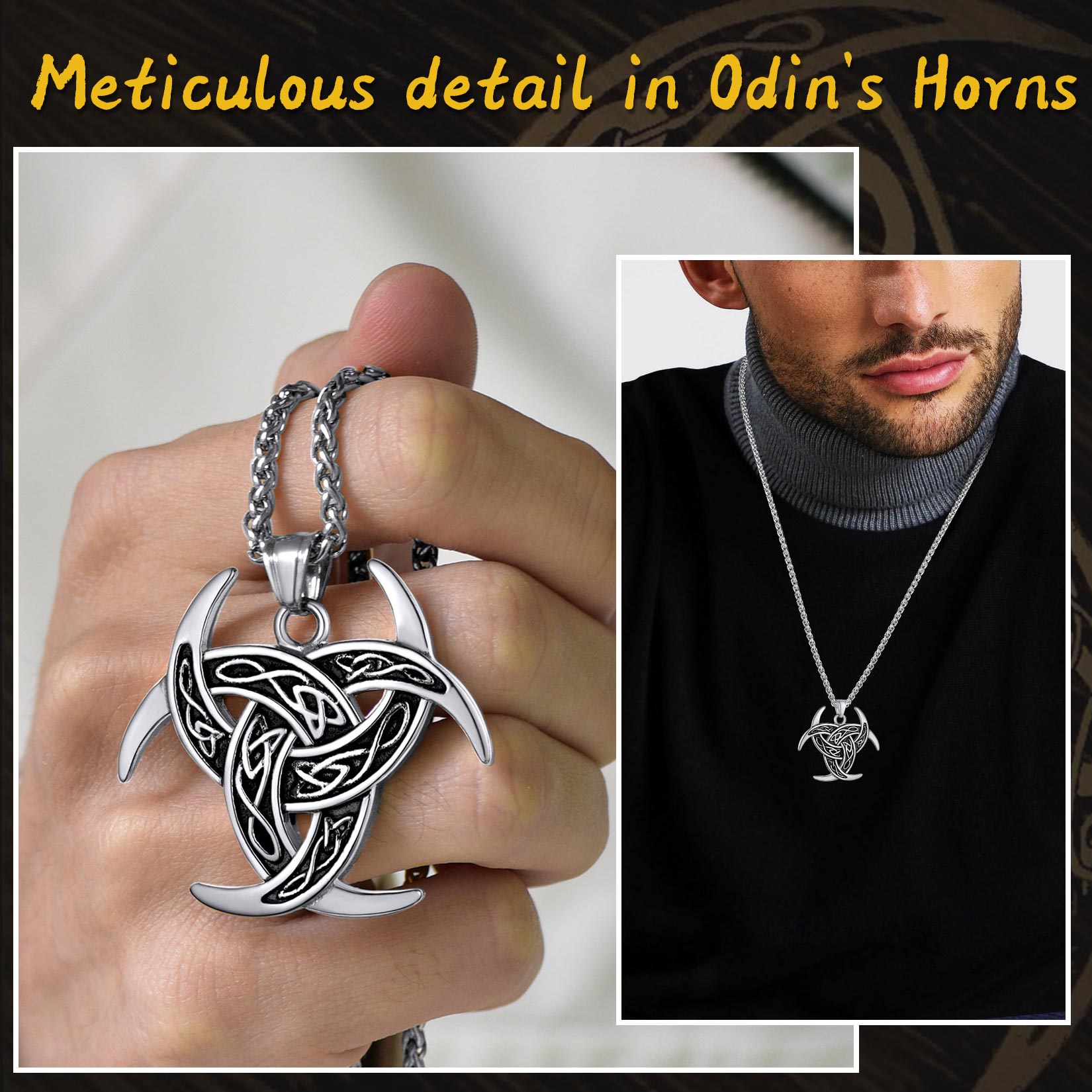 O colar masculino com o Chifre Triplo de Odin é usado como símbolo de Sabedoria e Inspiração, especialmente em inspiração poética. Este colar viking é feito de aço inoxidável, livre de níquel, e manterá o brilho por toda a vida, sem causar danos às pessoas. O melhor presente para os amantes vikings.