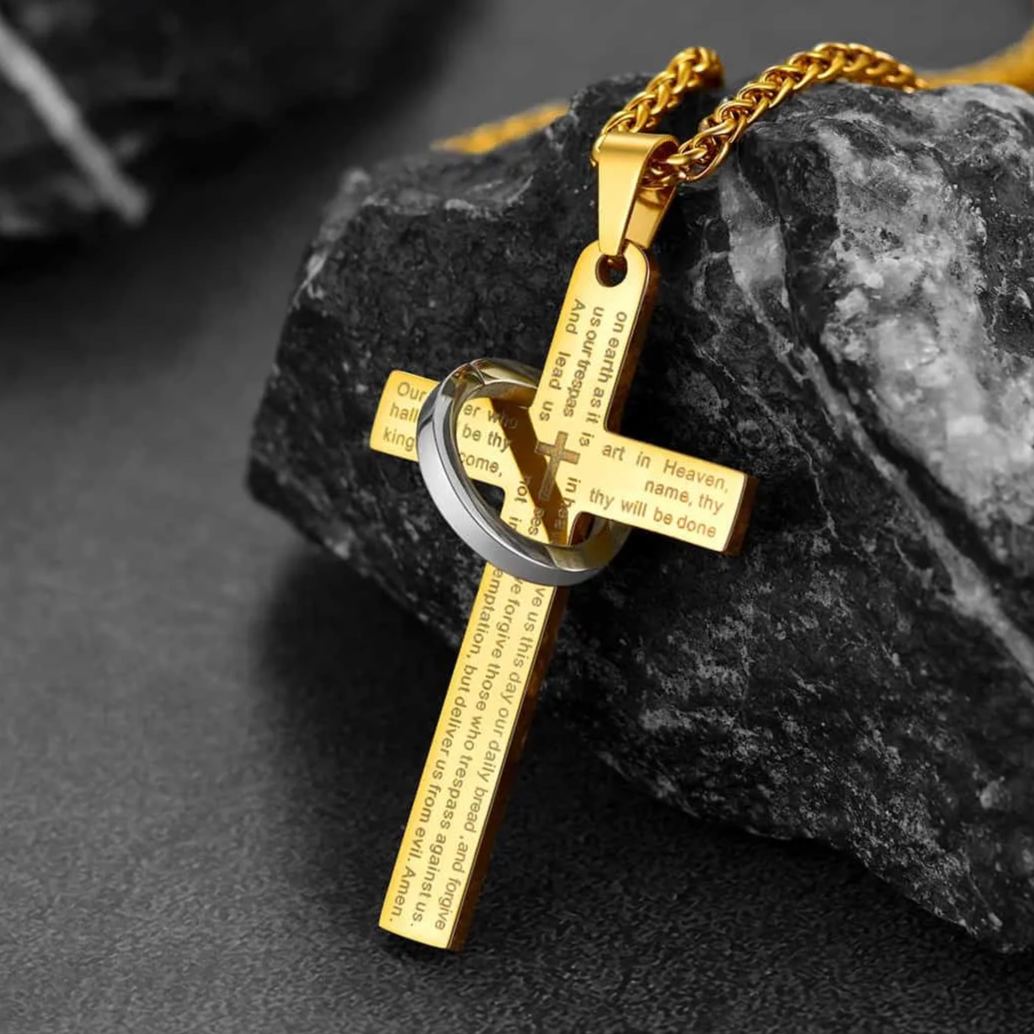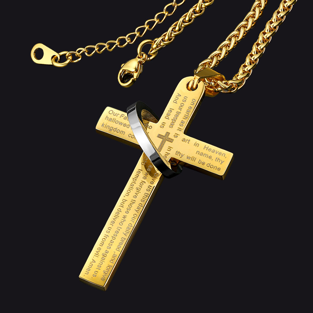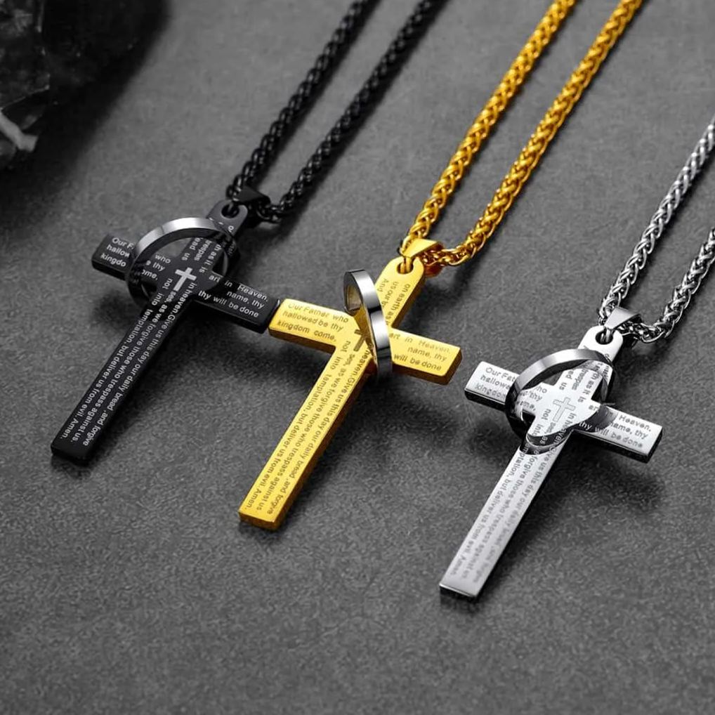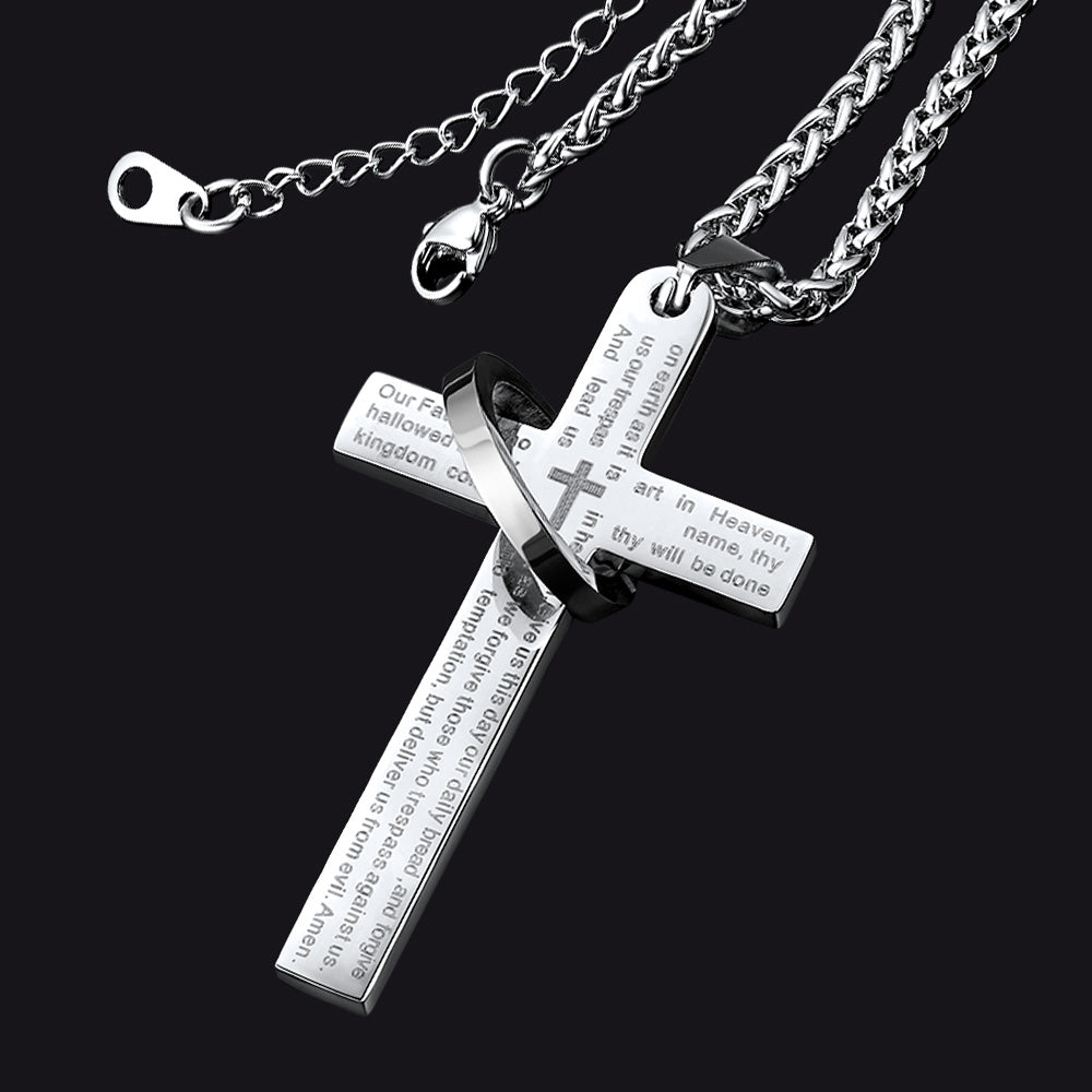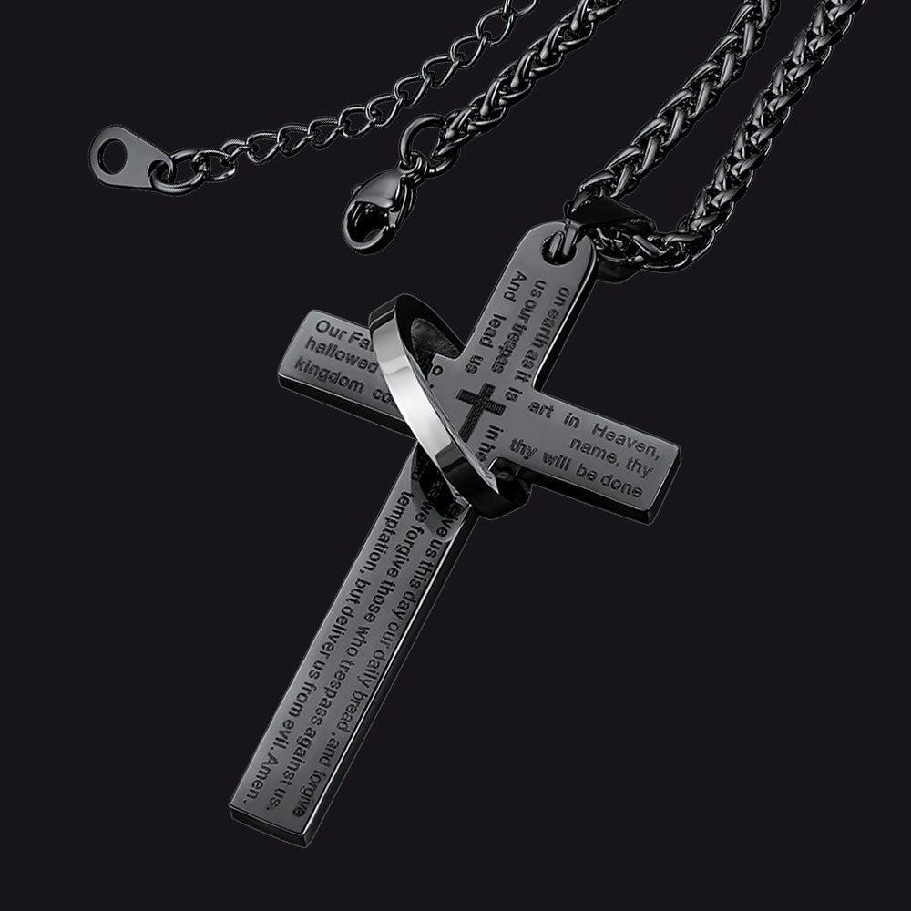 A cruz simboliza amor e redenção, perfeita para demonstrar sua fé. Colar com pingente de cruz com oração do Pai Nosso para homens, com anel holográfico, feito com alta qualidade e à prova de chumbo e níquel. Presente perfeito para Páscoa, Natal, aniversário, Dia dos Pais, aniversário de casamento, Ação de Graças ou Ano Novo para valorizar seus entes queridos.