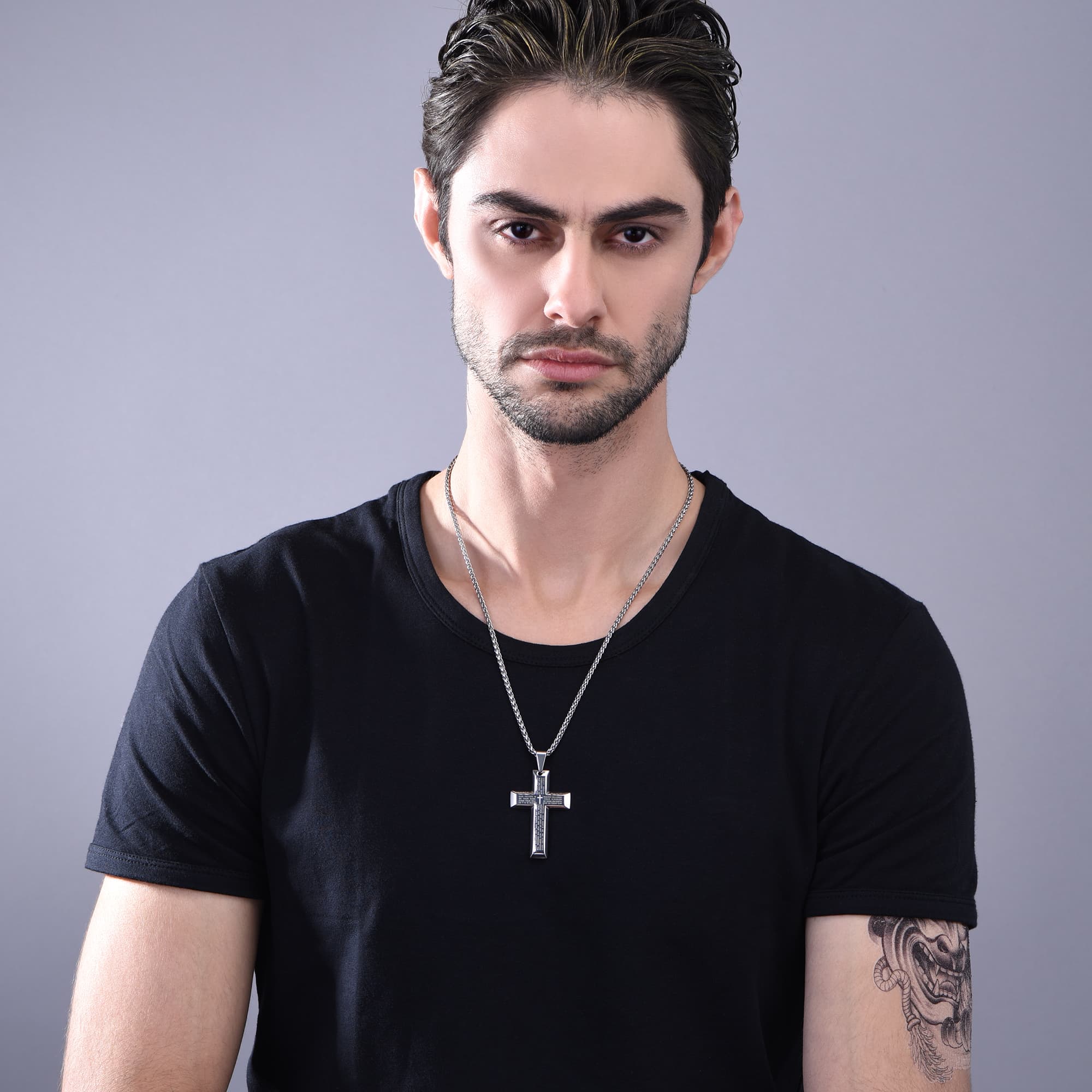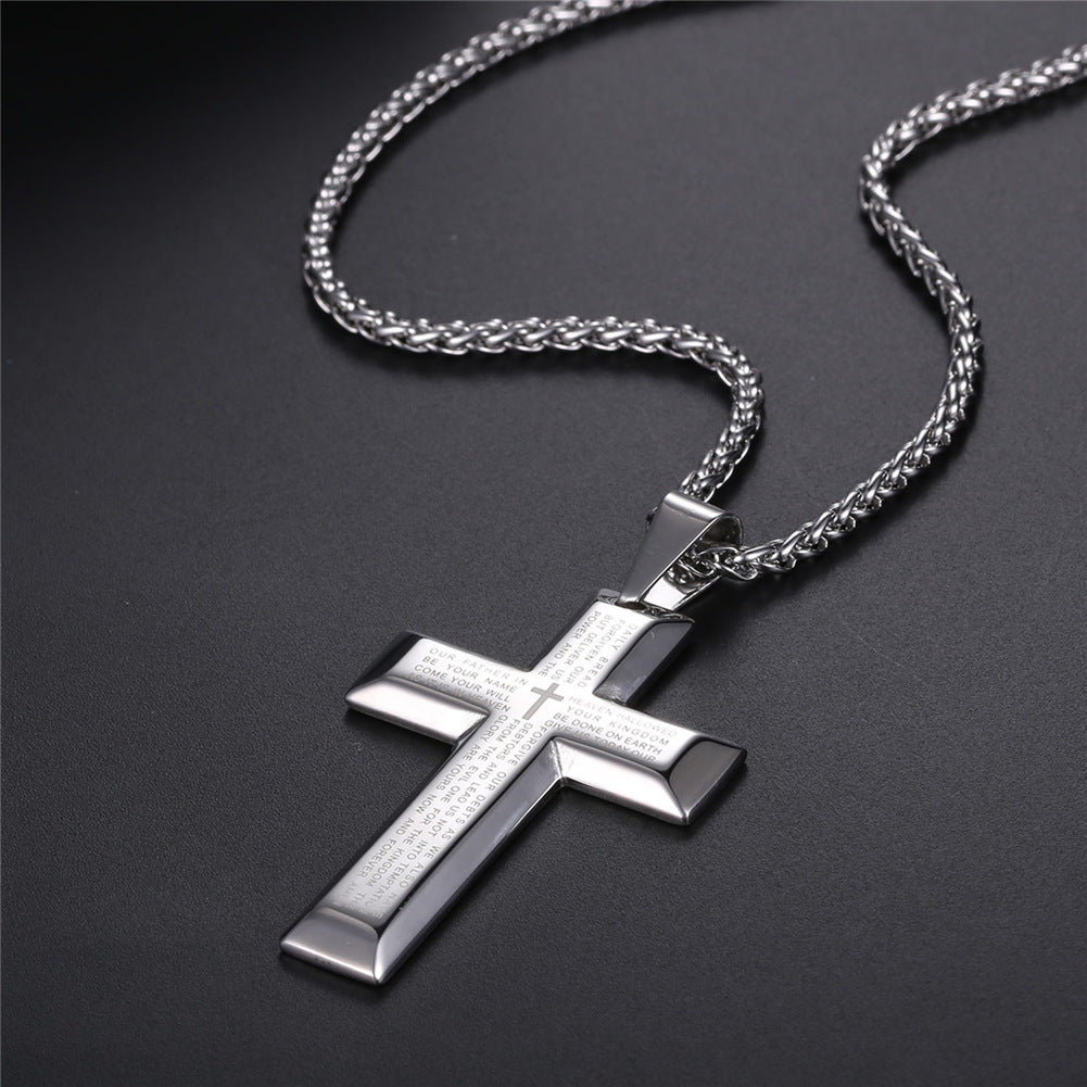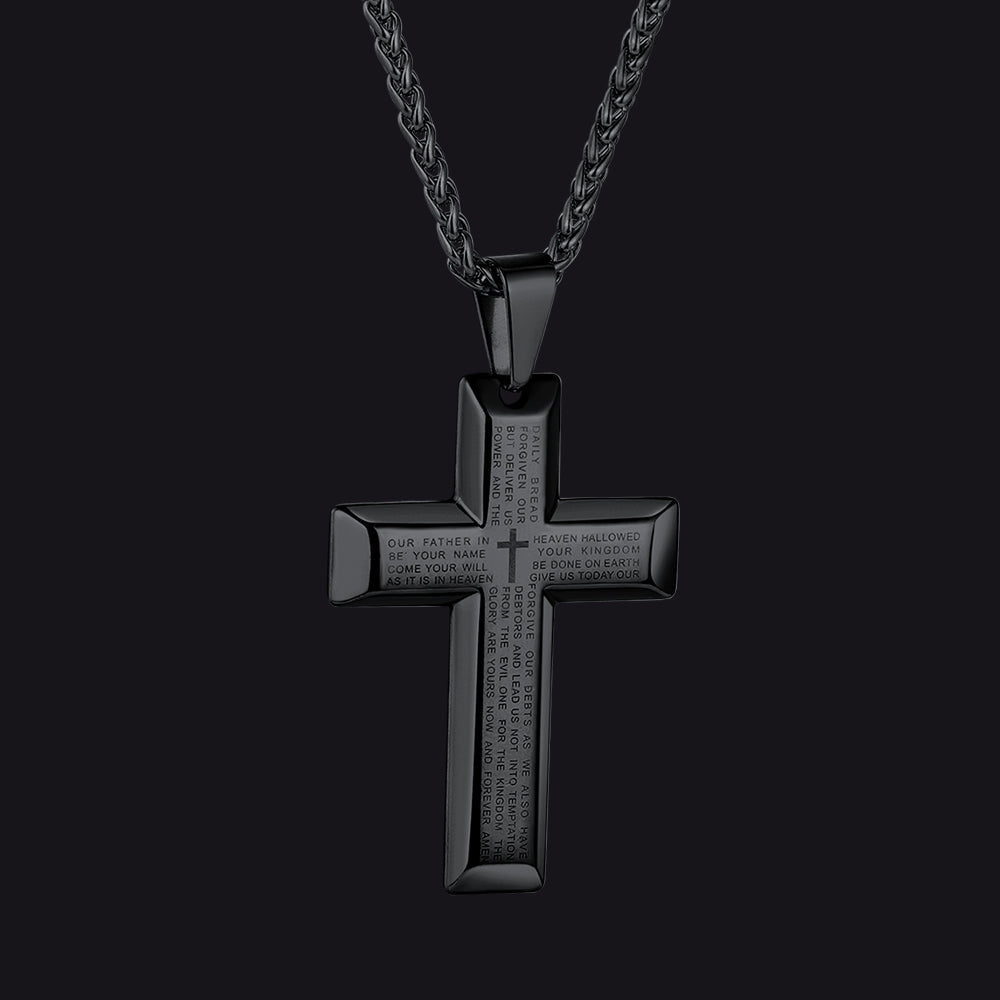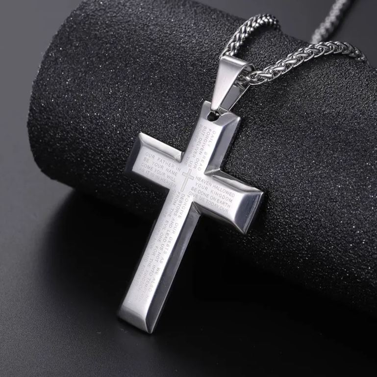 A Oração do Senhor, também chamada de Pai Nosso ou Pater Noster, é uma oração cristã fundamental que Jesus ensinou como a forma de orar. O colar com a cruz da Oração do Senhor simboliza "um sentimento de solidariedade em saber que cristãos em todo o mundo estão rezando juntos... e estas palavras sempre nos unem". Este colar com a cruz é um belo presente para homens.
