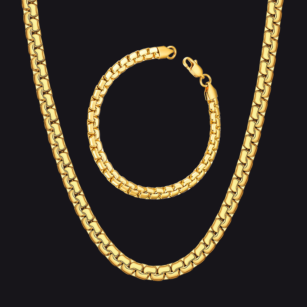 Aprimore seu estilo com este conjunto de corrente e pulseira Flat Box Link, projetado para homens modernos que apreciam estrutura e simplicidade. Com uma corrente de 6 mm e uma pulseira de 4 mm, este conjunto combina geometria ousada com um acabamento elegante.