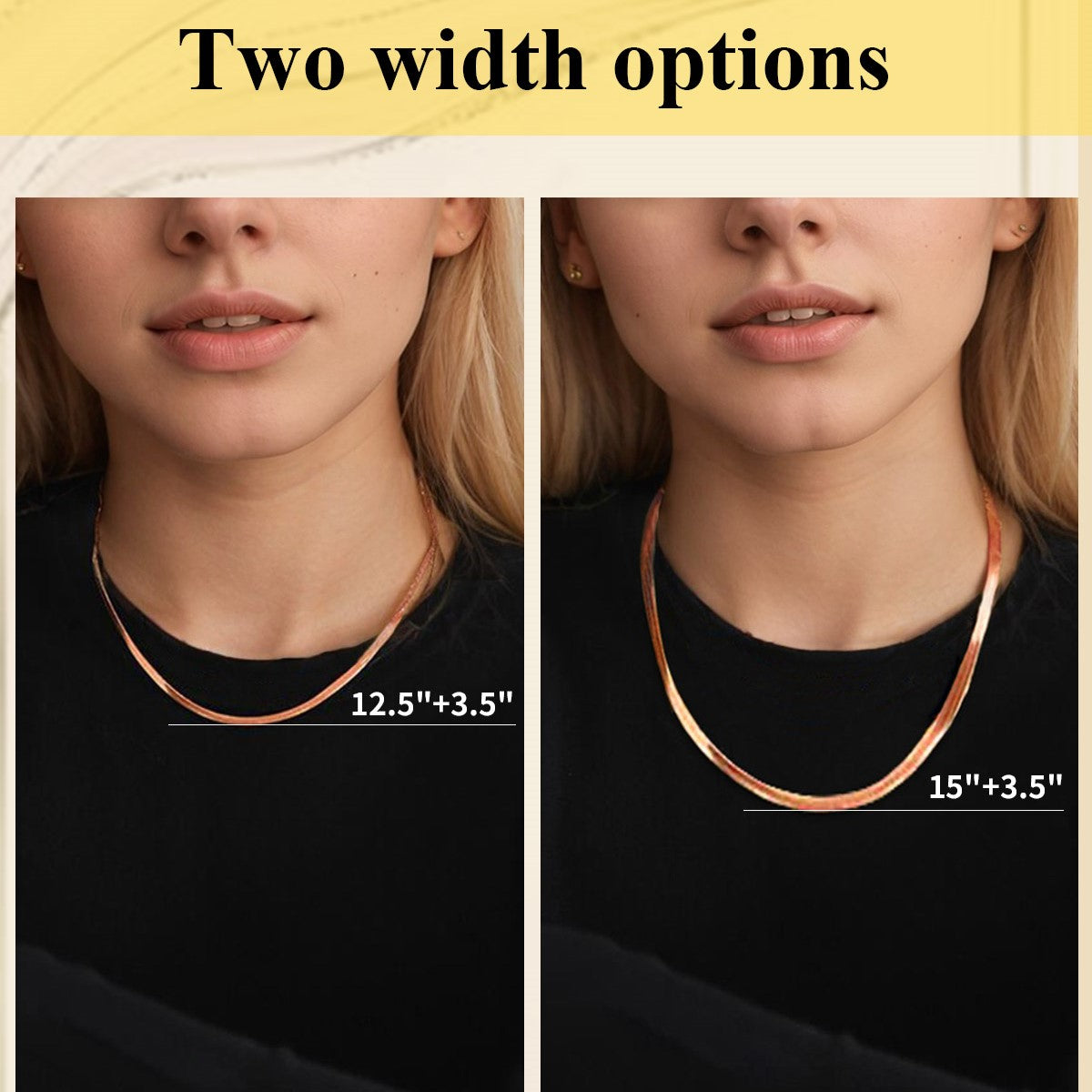 Escolha entre larguras de 3 mm, 5 mm ou 7 mm para combinar com seu estilo.