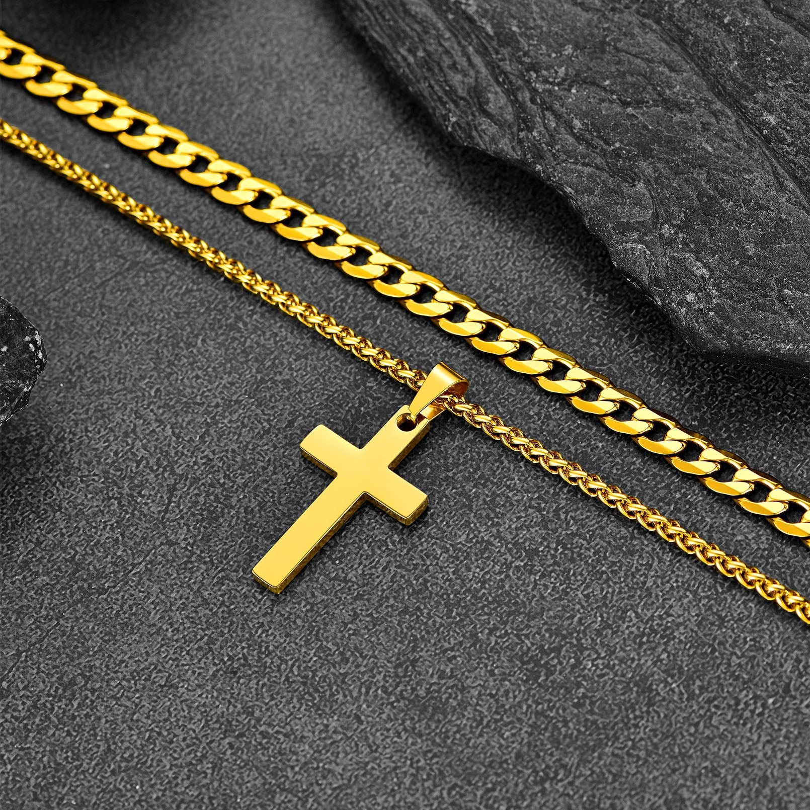 Este ousado conjunto de colares em camadas apresenta uma corrente cubana clássica combinada com um pingente de cruz detalhado, simbolizando força e fé. Feito para homens que valorizam significado e estilo, vem em uma caixa de presente premium — um presente de aniversário ou espiritual ideal que deixa uma impressão duradoura.