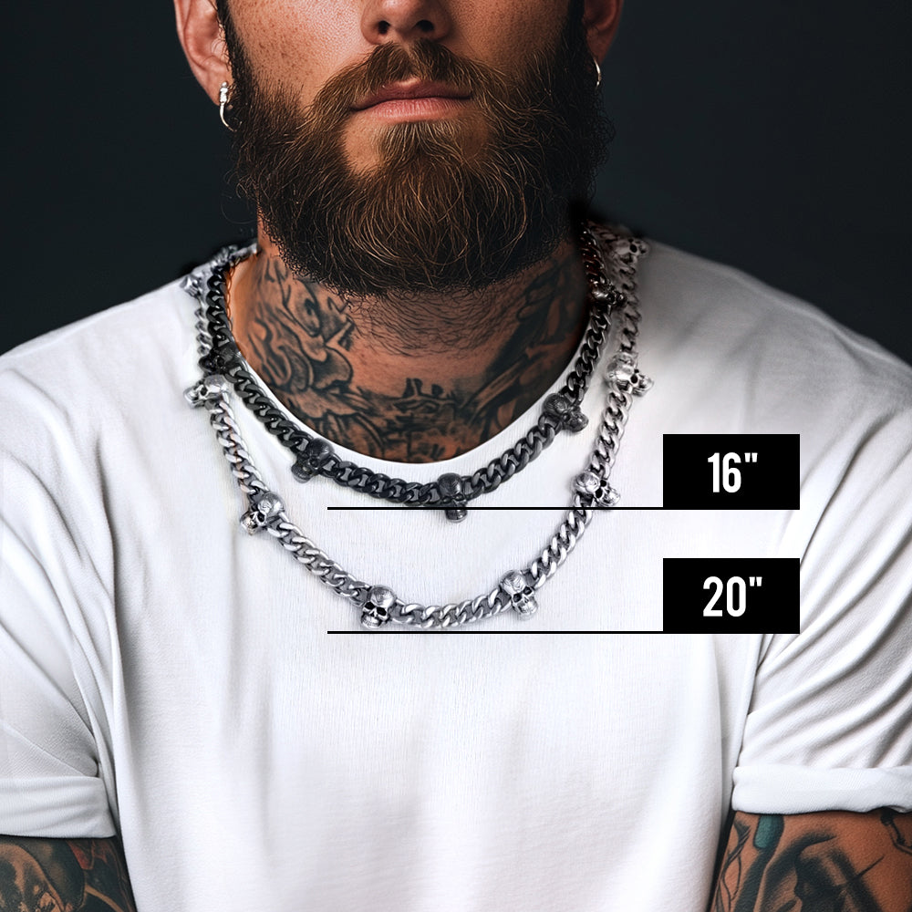 Disponível em diferentes comprimentos (40/50 cm) e três cores, este colar cubano com caveira é um presente inesquecível para pais, maridos, filhos ou amigos. É perfeito para aniversários, bodas de ouro, Dia dos Pais ou como um gesto de agradecimento.