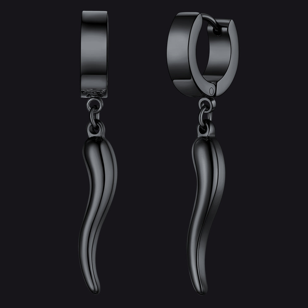 Brincos de argola Huggie de chifre italiano Cornicello para homens