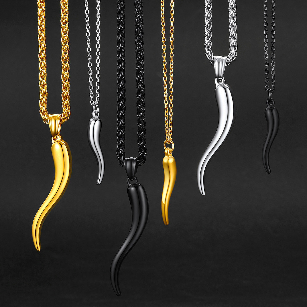 Todo italiano pode usar com orgulho estes pingentes de chifre italiano, que se acredita protegerem quem os usa do ciúme, da inveja e do mau-olhado. Este colar minimalista de chifre italiano brilha com um brilho dourado que chama a atenção de todos os lados. Acessórios de amuleto deslumbrantes e atraentes.
