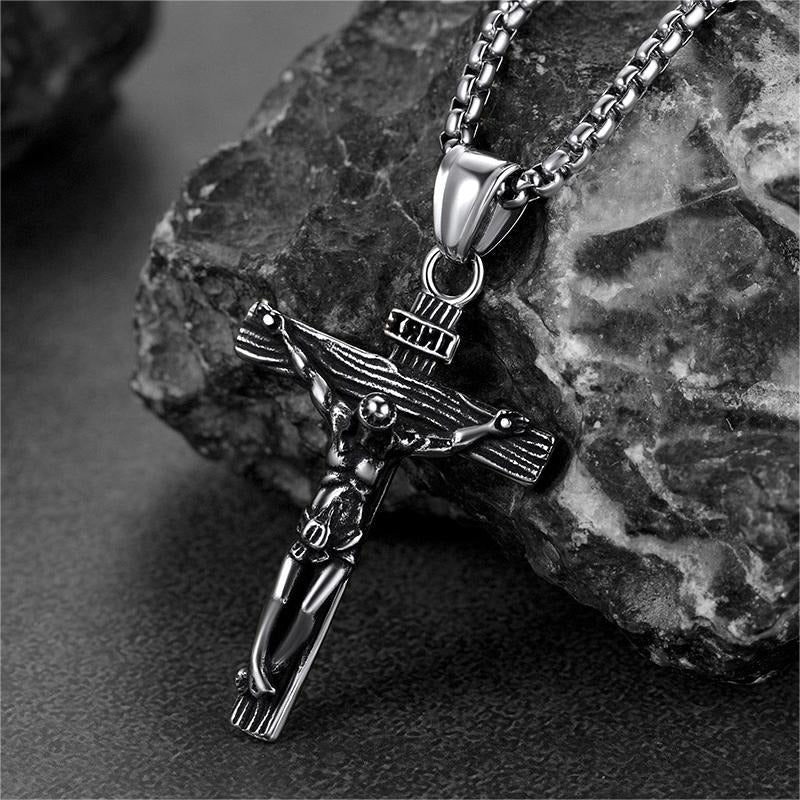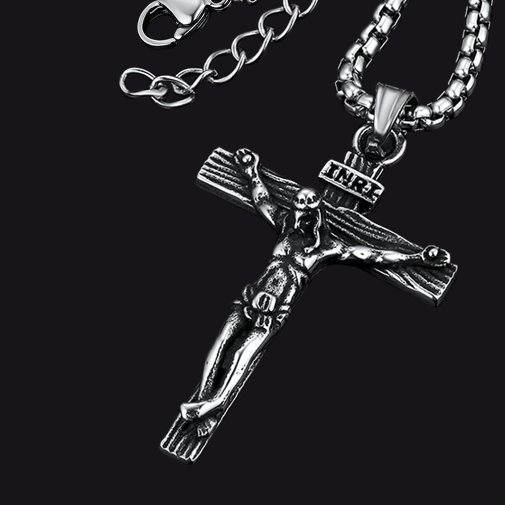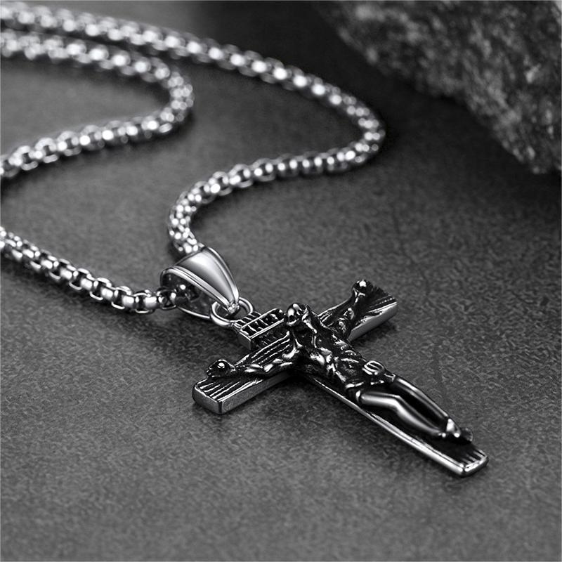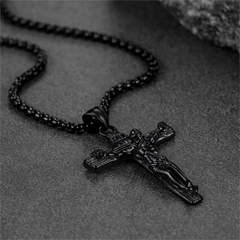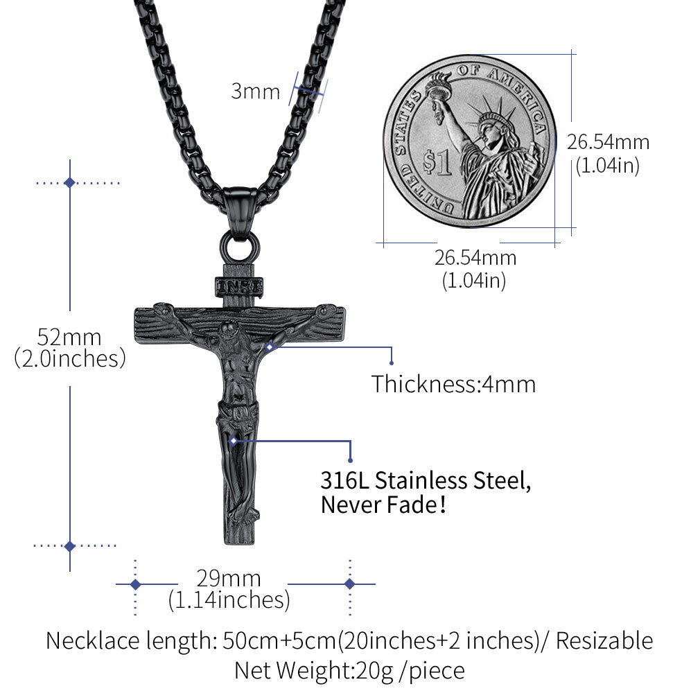 O colar com pingente de crucifixo de Jesus maciço é feito de aço inoxidável de alta qualidade. Resistente ao desgaste, antissuor e não irrita a pele. Ótimo para uso diário. O colar com cruz simboliza amor e redenção, e é perfeito para demonstrar sua fé. Presente perfeito para a Páscoa, Natal, aniversário, Dia dos Pais, aniversário de casamento, Ação de Graças ou Ano Novo para homenagear seus entes queridos.