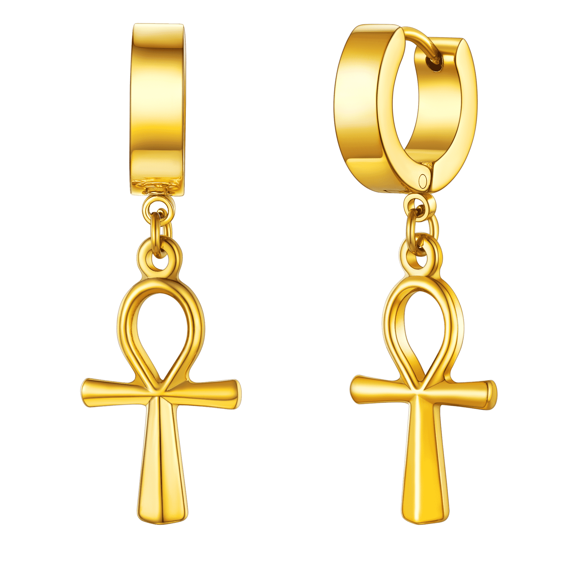Brincos de argola pendentes em forma de cruz Ankh para homens e mulheres