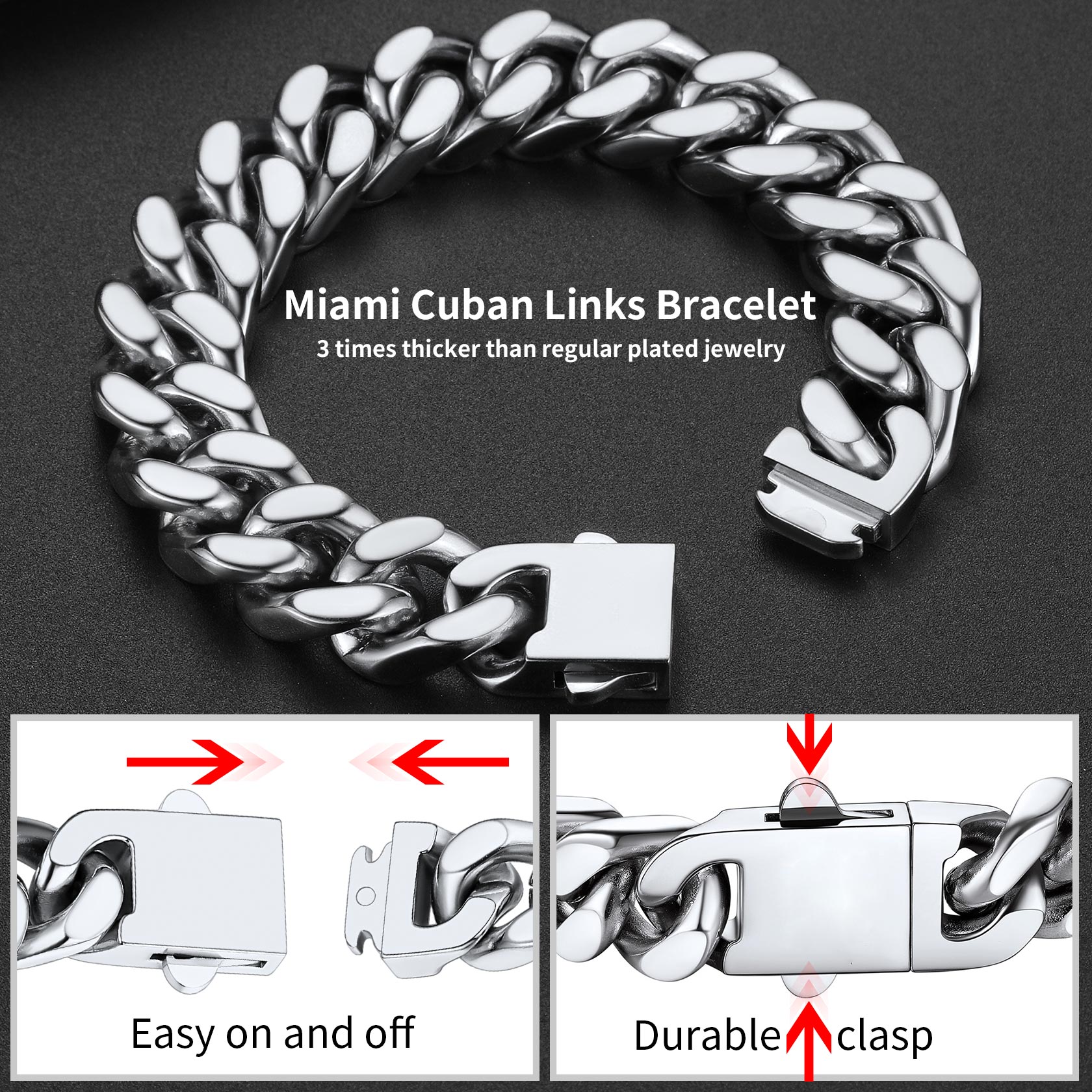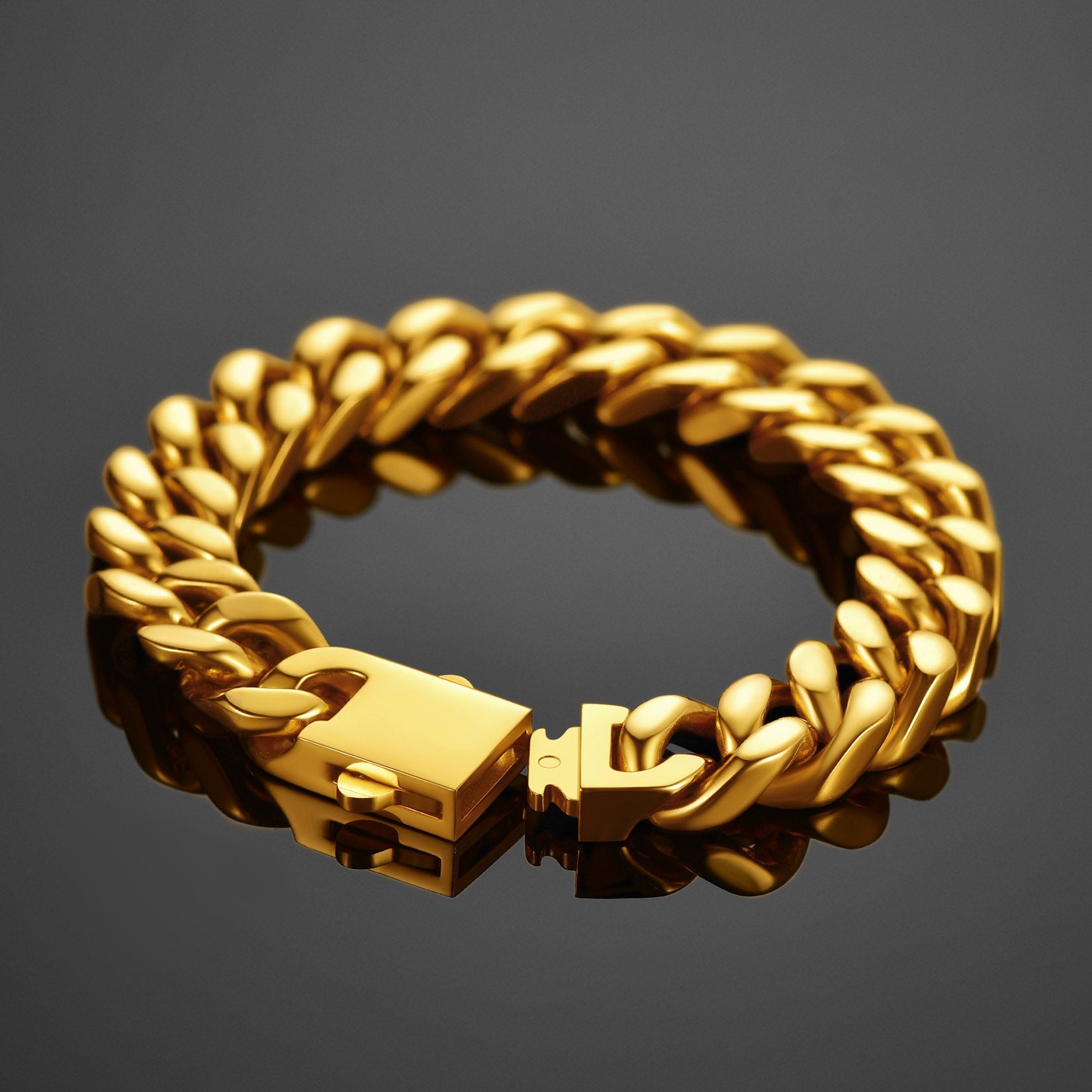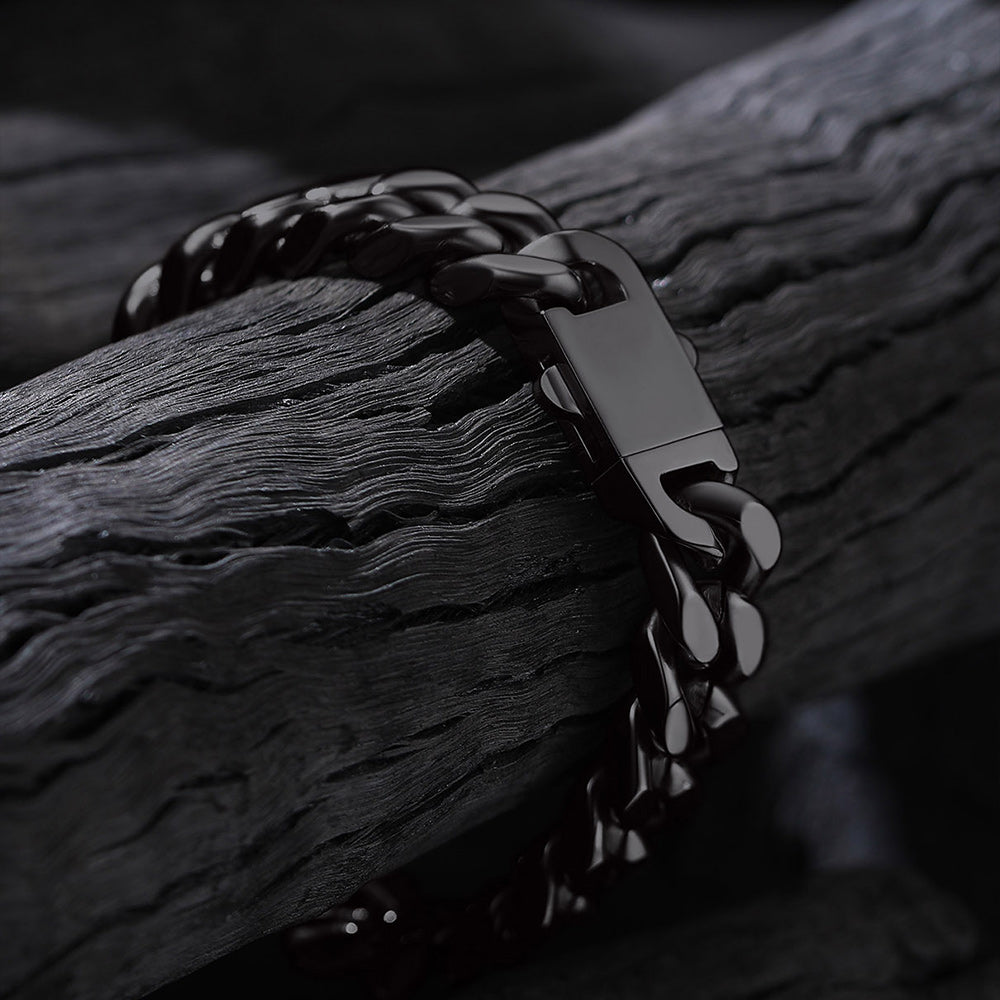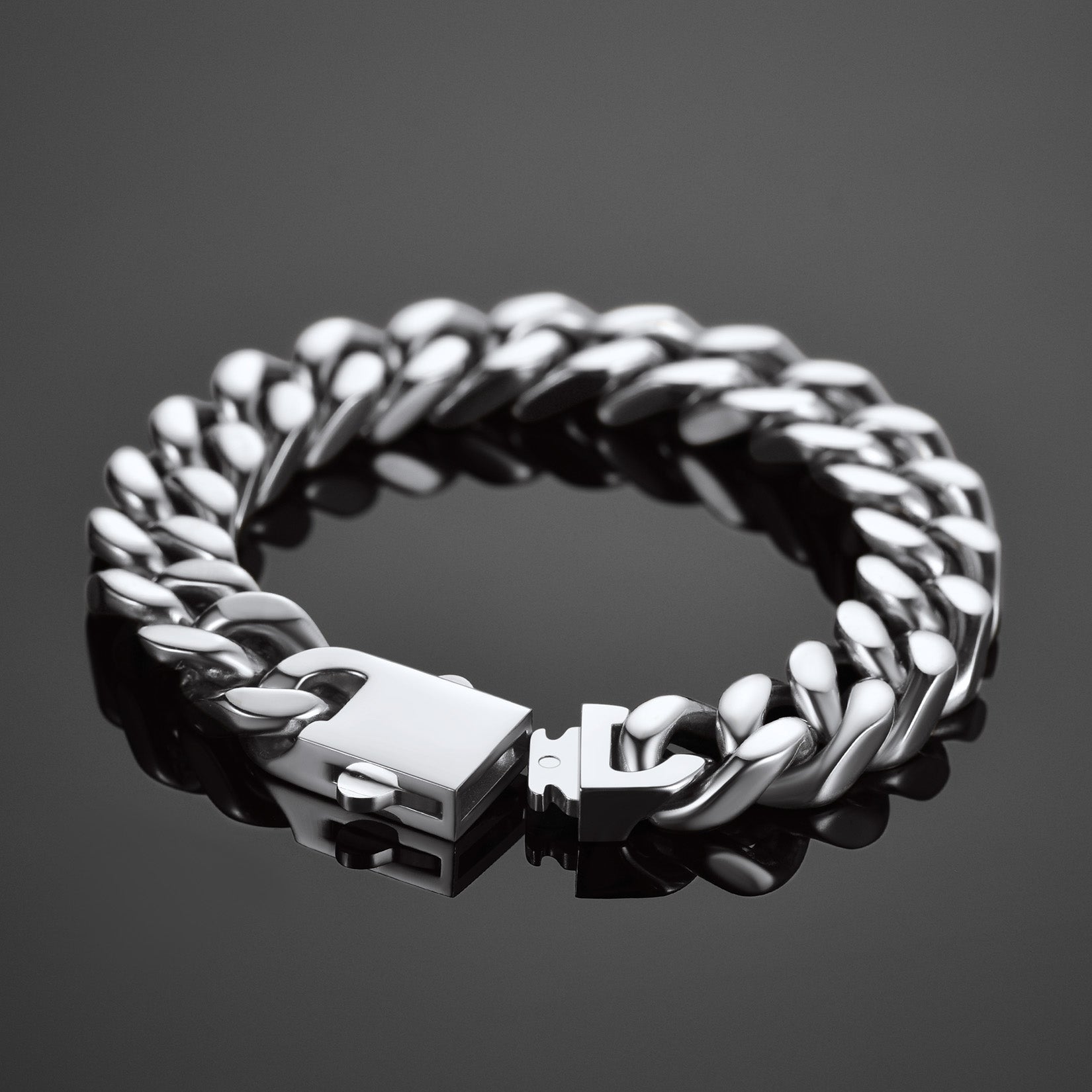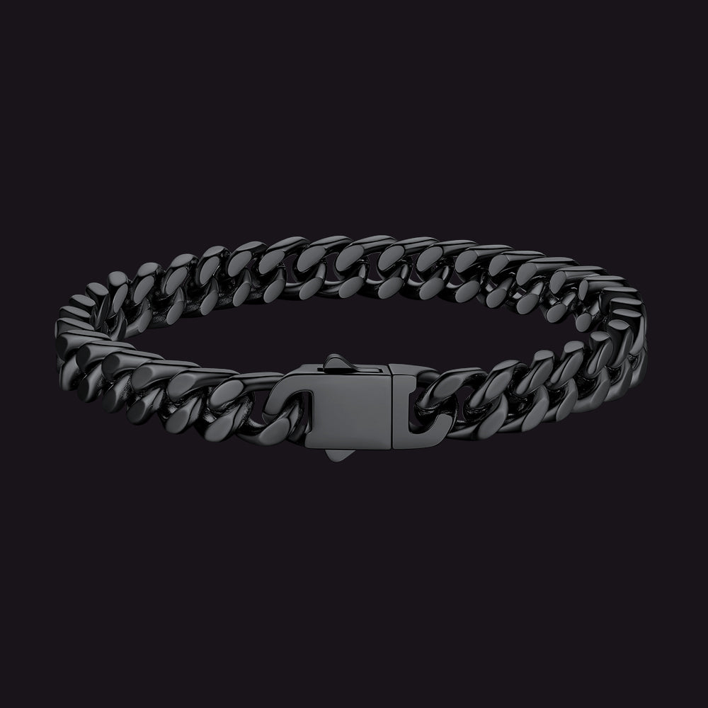 Cada pulseira apresenta um design clássico de elos cubanos com bordas cortadas com precisão que refletem a luz com perfeição, conferindo-lhe um brilho inconfundível e altamente polido. O toque robusto e pesado incorpora força e resiliência, enquanto o fecho dobrável oferece segurança, simbolizando estabilidade e confiança. Estas pulseiras são versáteis e atemporais, ideais tanto para uso casual quanto para ocasiões formais, marcando presença em qualquer ambiente.