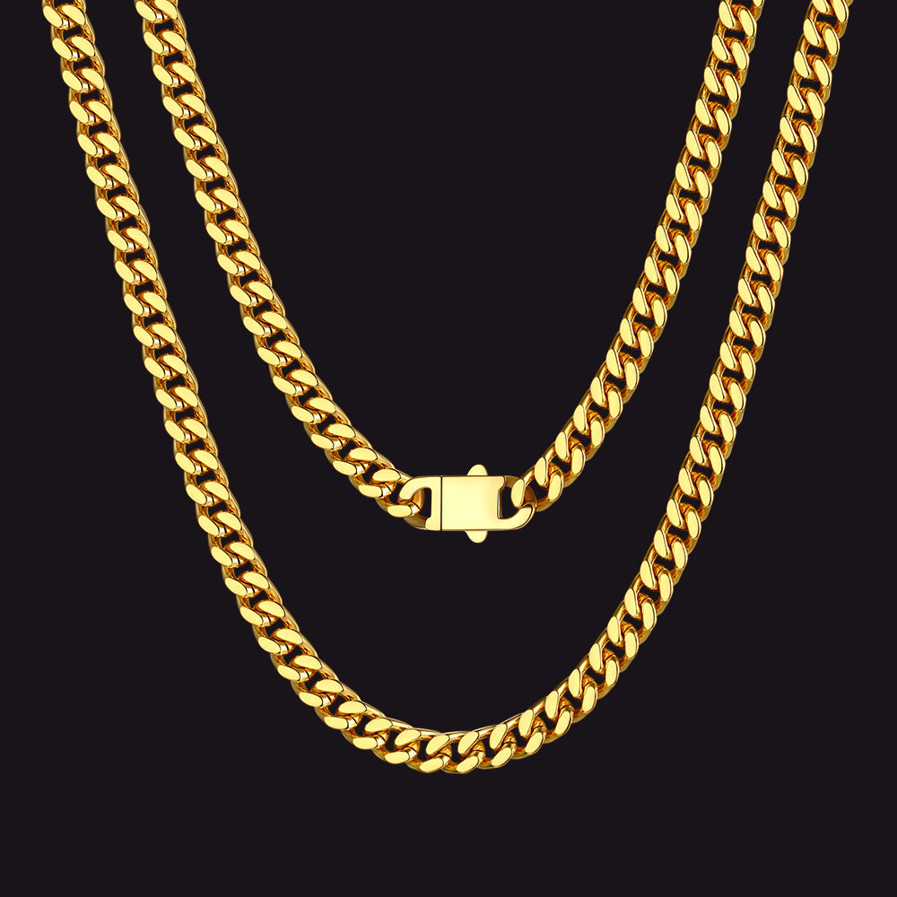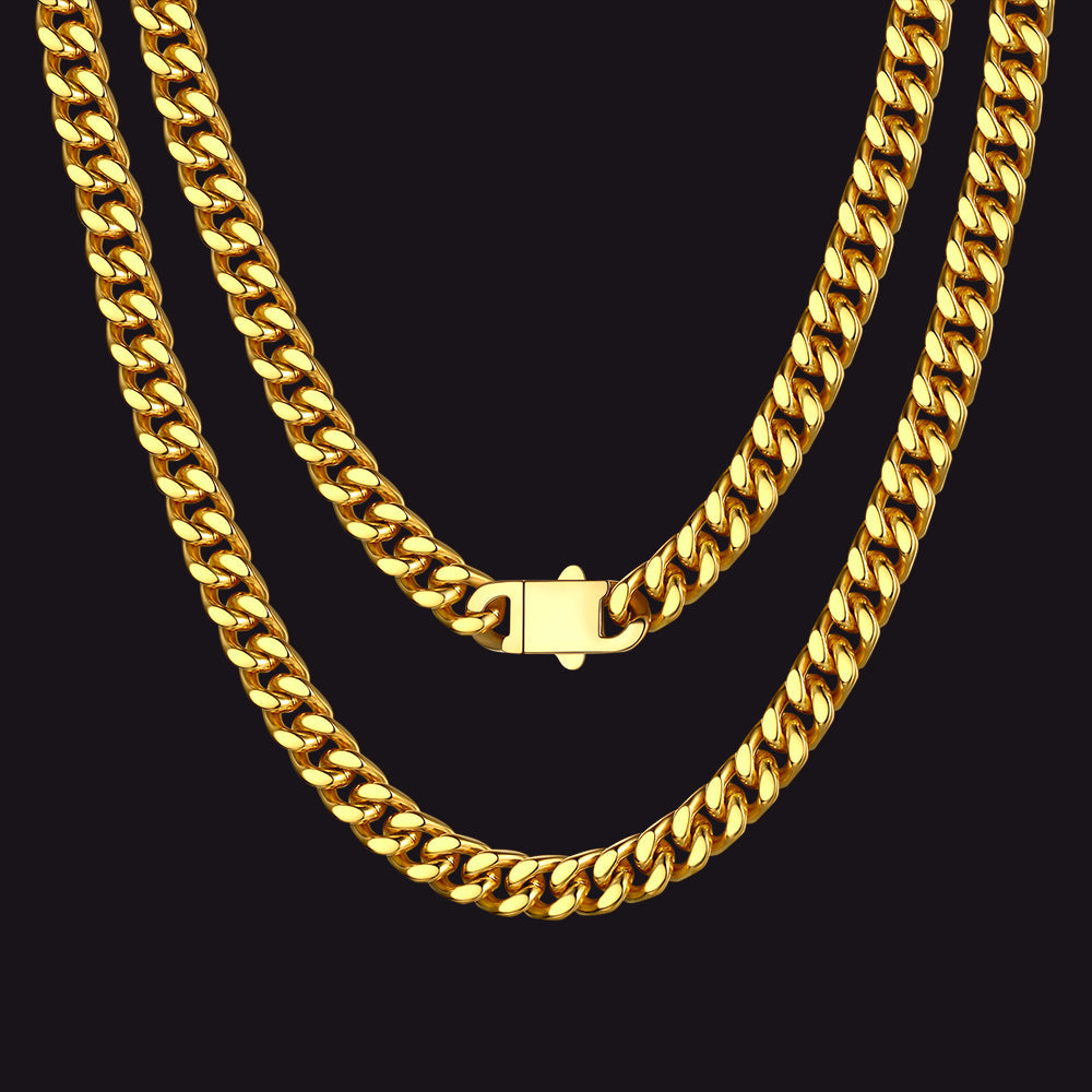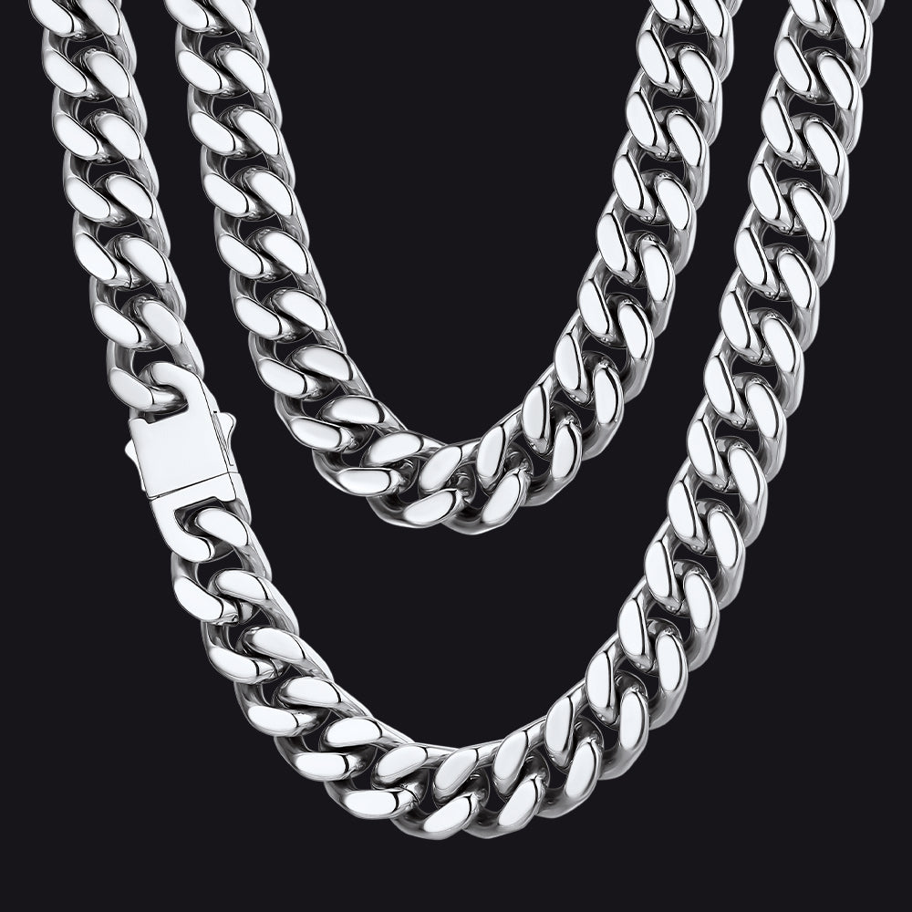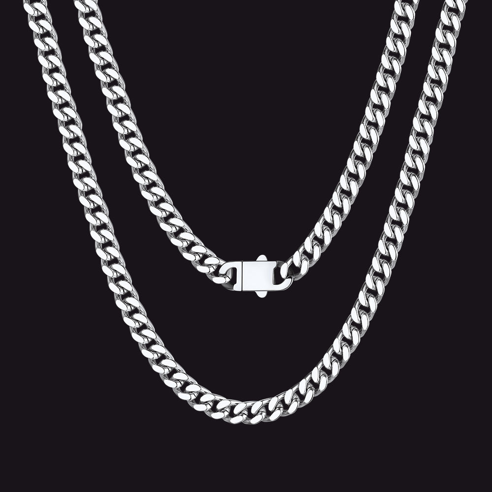 O design exclusivo com recortes espaciais realça as bordas afiadas e o acabamento brilhante da corrente, tornando-a atraente sob qualquer luz. O design clássico dos elos cubanos resiste ao teste do tempo, representando moda duradoura e confiança.
