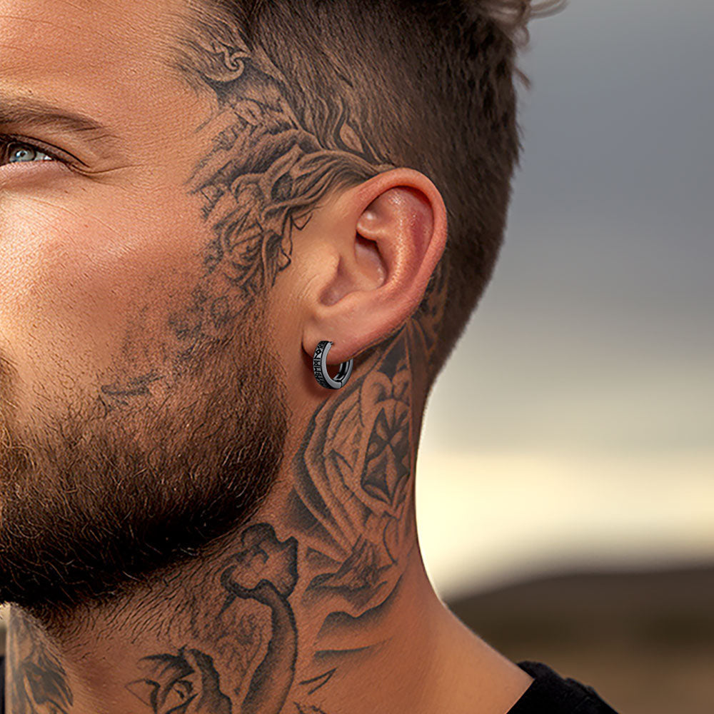 Inspirados na cultura nórdica e confeccionados com cuidado, estes brincos combinam simbolismo antigo com elegância moderna. Perfeitos para homens que apreciam acessórios ousados e cheios de significado.