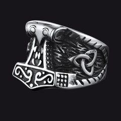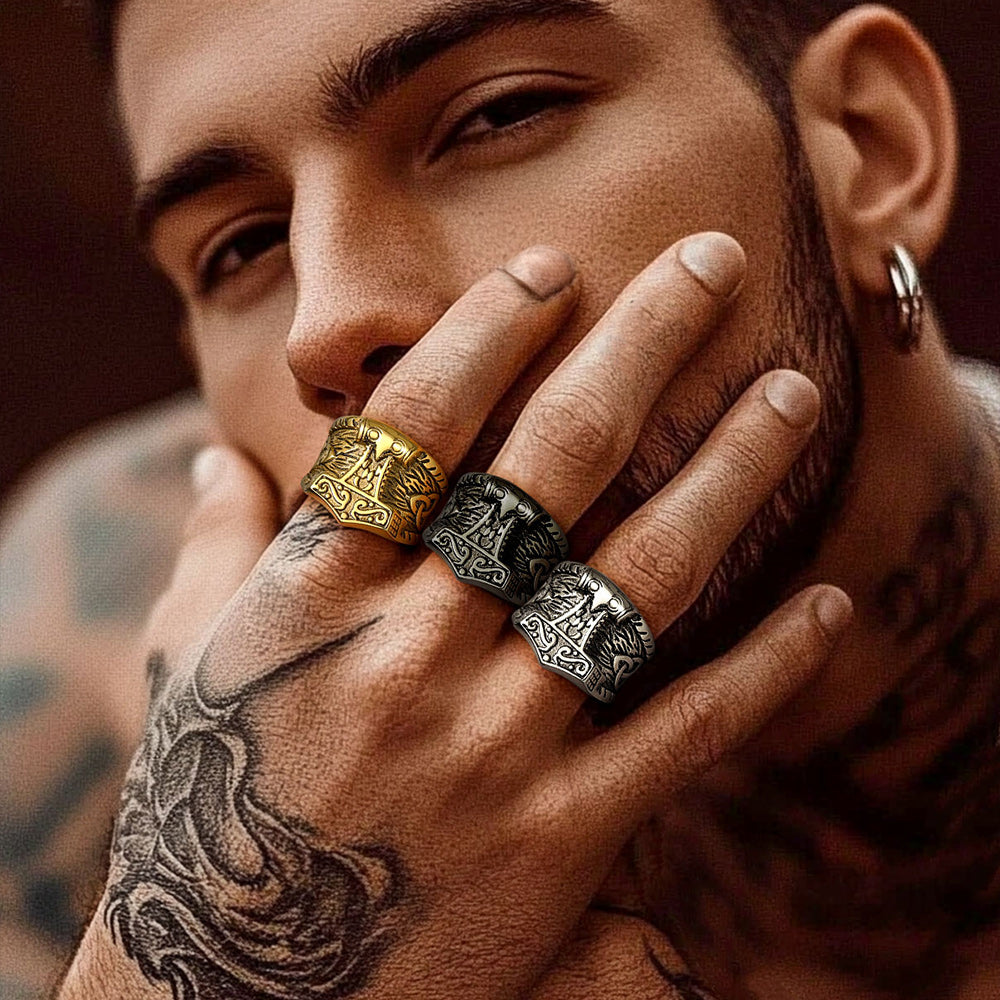 Um anel elegante com o Martelo de Thor, confortável o suficiente para ser usado no dia a dia. Altamente polido. Acabamento primoroso e ajuste confortável.