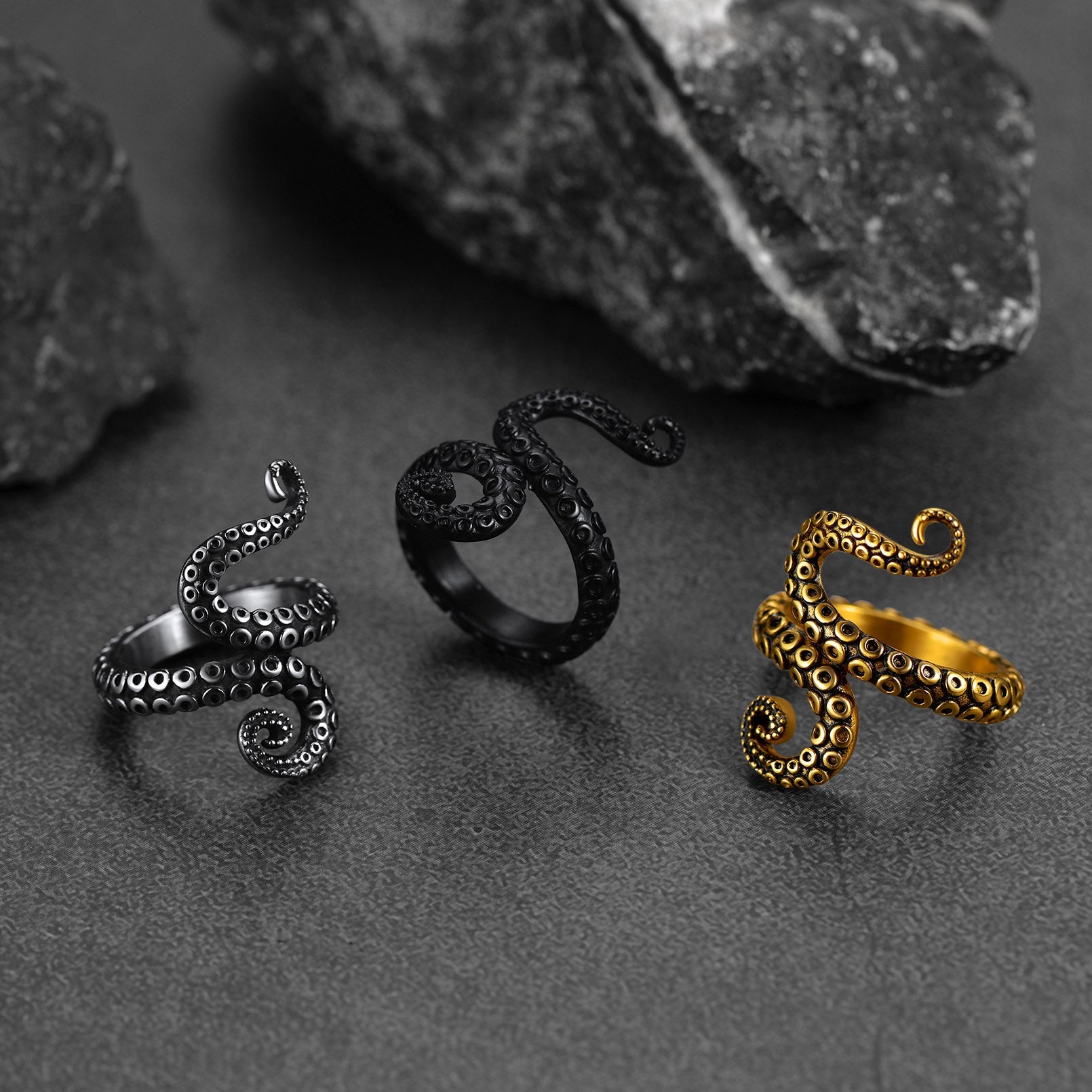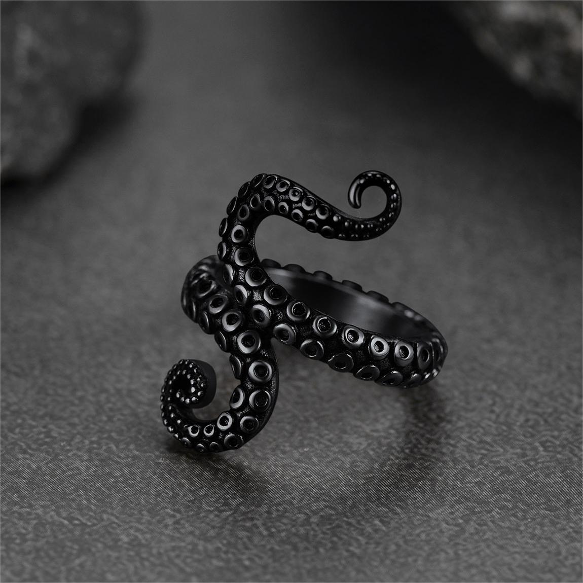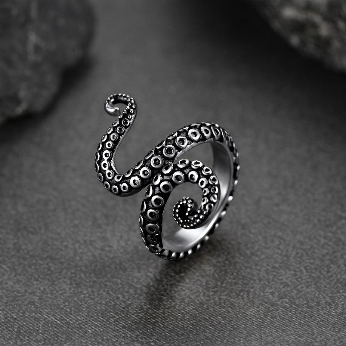 Anéis punk com tentáculos de polvo para homens simbolizam pureza, emoção, psíquico e criatividade. As propriedades regenerativas do polvo nos lembram que nem tudo está perdido. Com a busca por artesanato requintado, o estilo heavy metal rock punk é masculino, simples, porém impressionante, um presente ideal para meninos, homens e namorados.