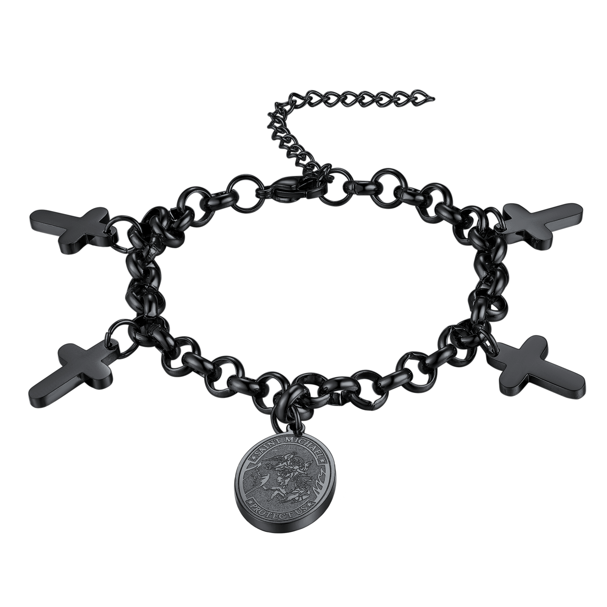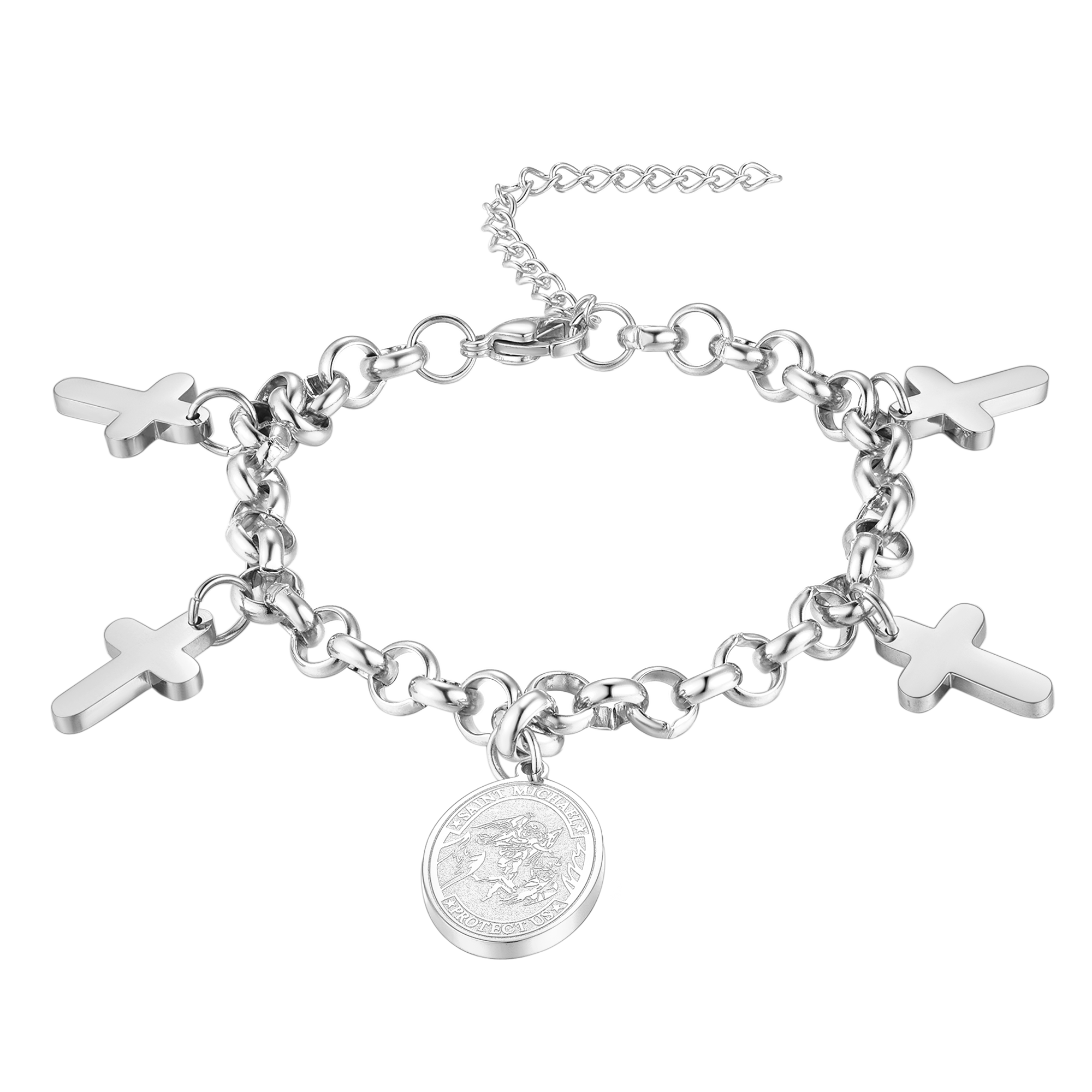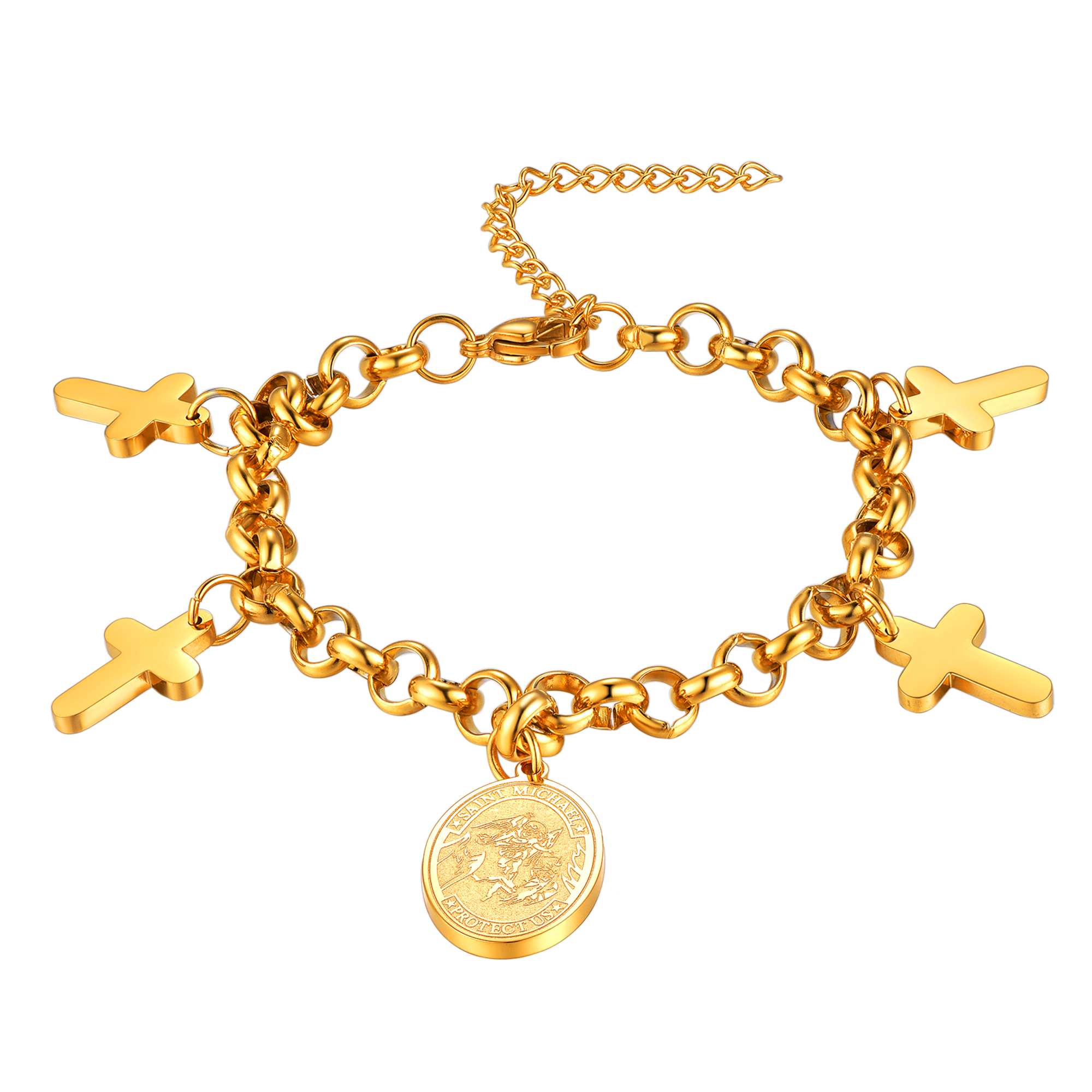 A cruz da sorte combinada com o design da medalha de São Miguel faz com que esta pulseira de São Miguel seja adequada para qualquer ocasião, seja para uso diário em casa ou no escritório, dentro do elemento moderno e da moda, chamando a atenção das pessoas na multidão.