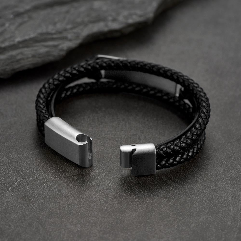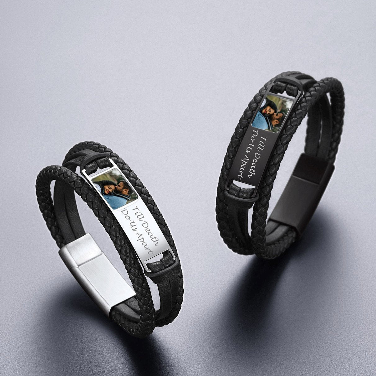 Celebre o vínculo entre o homem e seu fiel companheiro com esta pulseira de couro personalizada. Confeccionada em couro trançado premium e aço inoxidável durável, ela apresenta uma foto personalizada do seu pet gravada dentro do painel do medalhão, mantendo seu amigo peludo sempre por perto. Esta pulseira atemporal é um presente emocionante para pais, filhos ou amantes de animais de estimação, perfeita para aniversários, bodas ou memoriais de animais de estimação. Projetada para uso diário, ela combina estilo masculino com significado emocional.