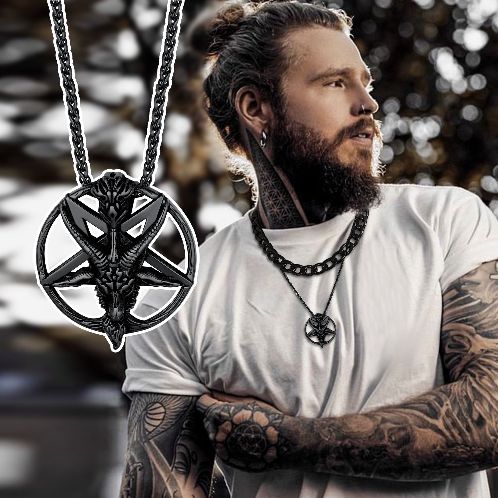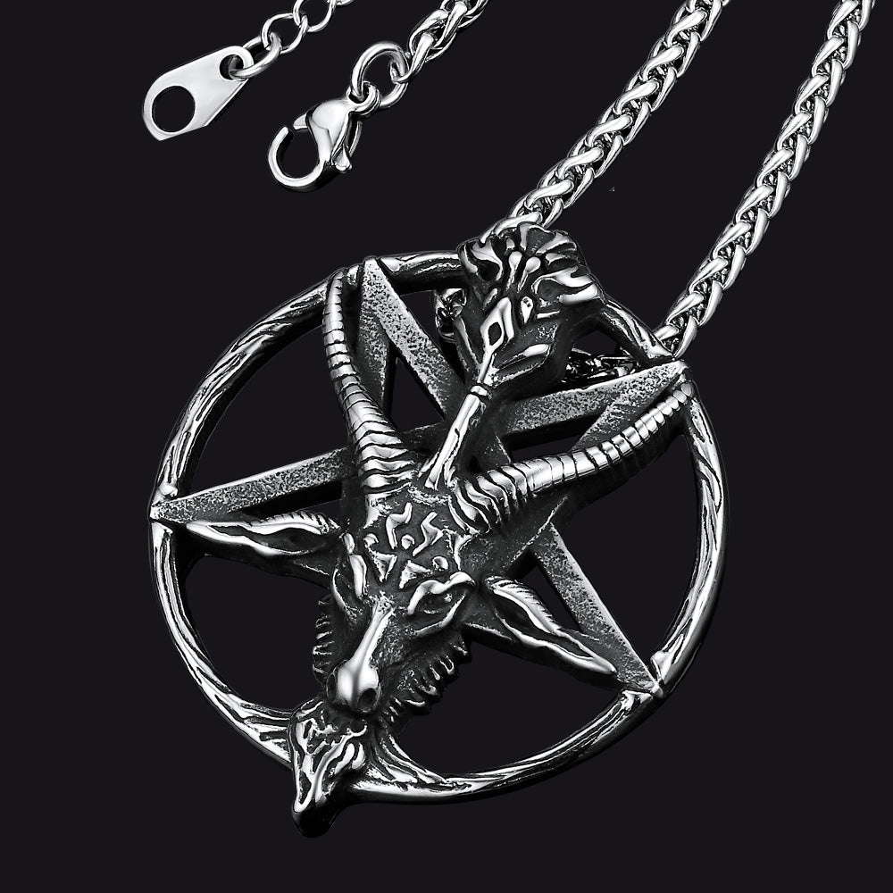 O colar com pentagrama invertido da Cabra do Baphomet Satânico é finamente esculpido e polido. Com significados relacionados ao equilíbrio de poder no universo, este colar com amuleto da cabra satânica promete ser um adorno elegante e uma proteção perfeita para quem o usa, tornando-o mais corajoso. É um presente ideal para qualquer homem ou menino, perfeito para qualquer ocasião especial.