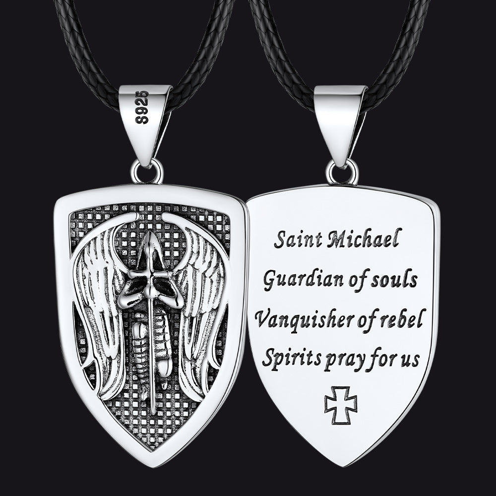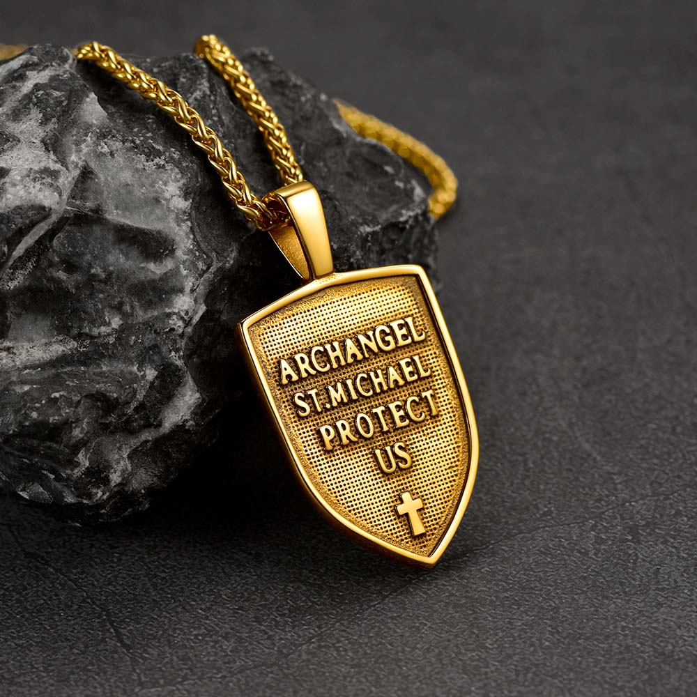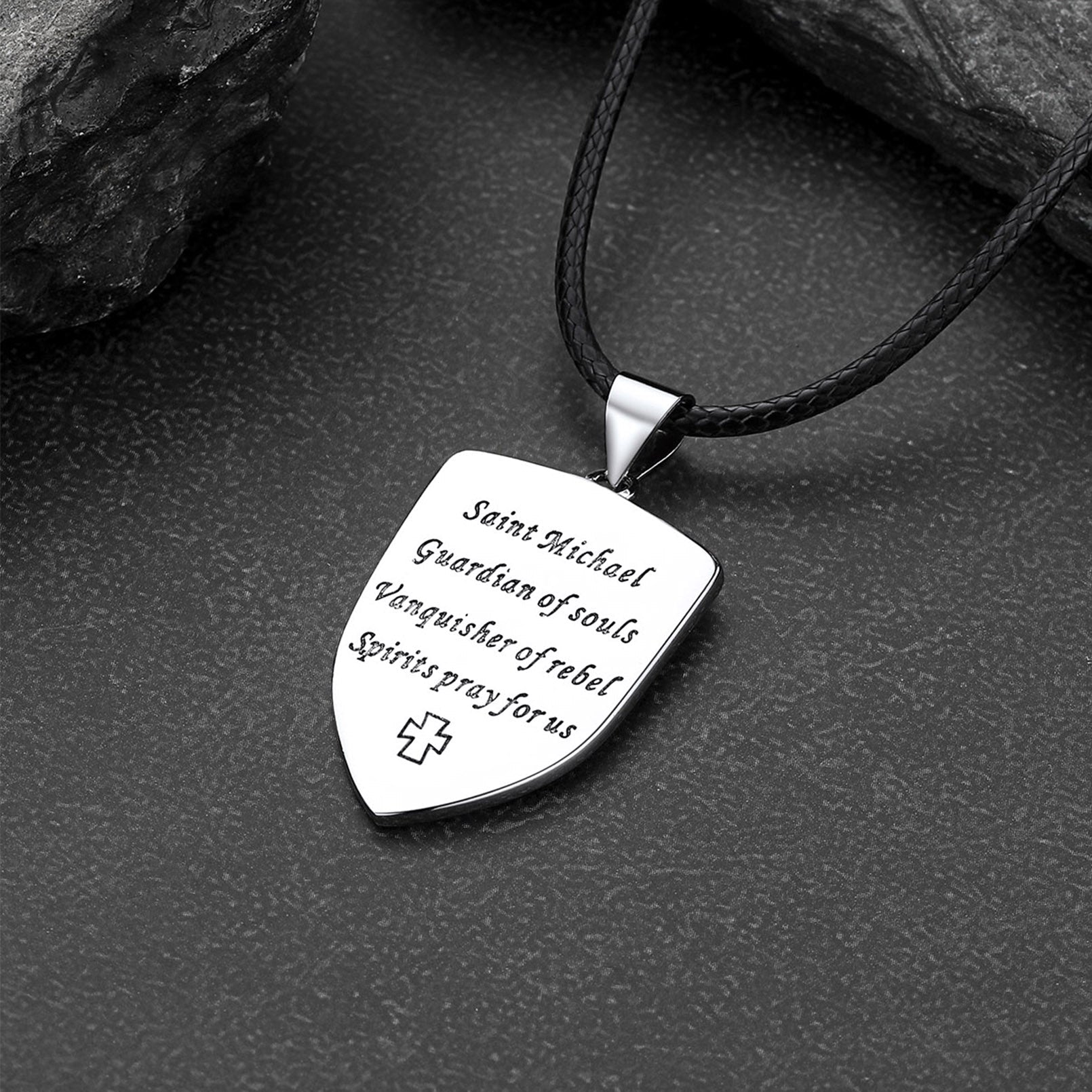 Colar de proteção com o Arcanjo São Miguel para homens. Use este colar de amuleto para proteger seus entes queridos. Feito de aço inoxidável 316L com design masculino, hipoalergênico, livre de níquel e chumbo, adequado para uso prolongado. Presente perfeito para policiais, bombeiros, soldados e aqueles que protegem os outros.
