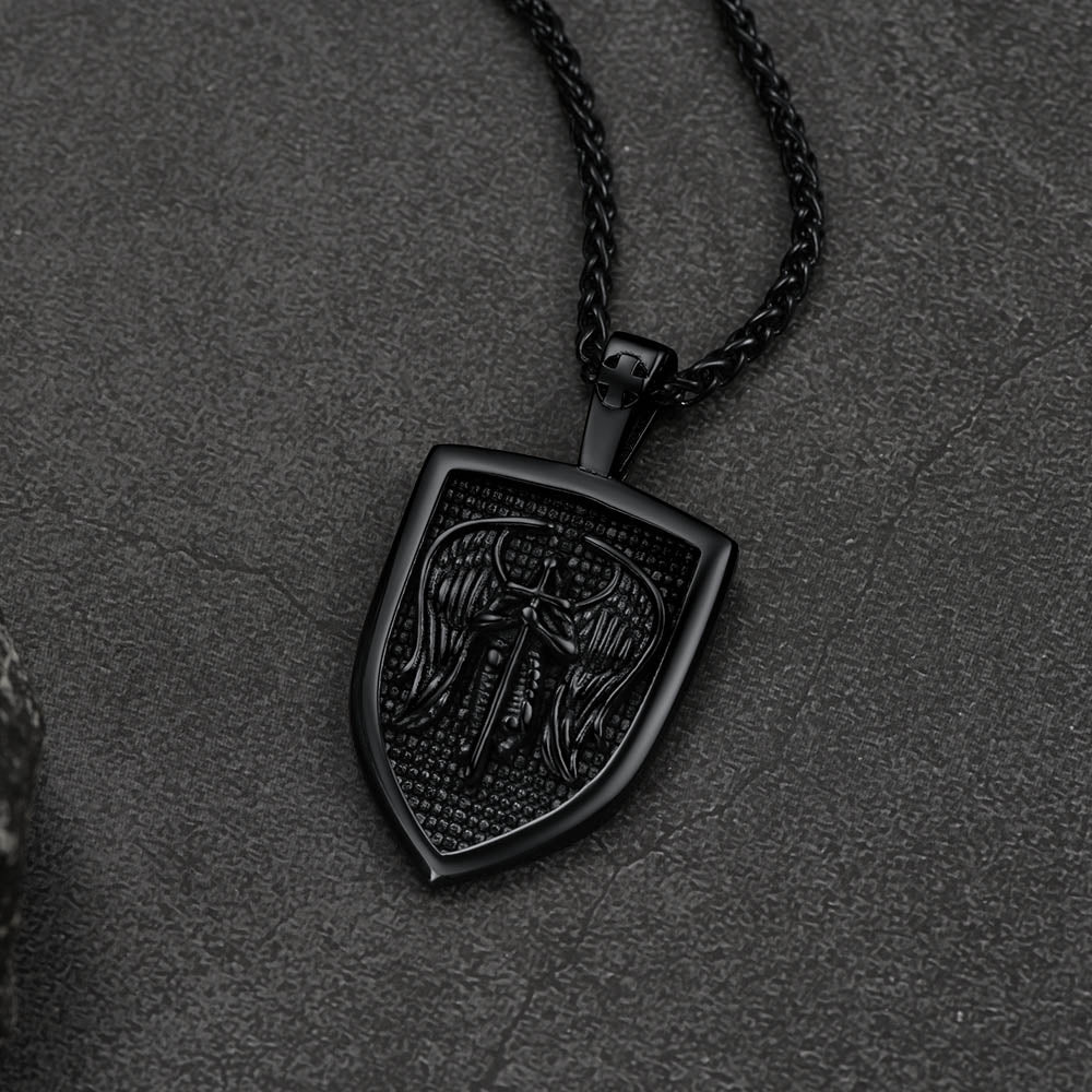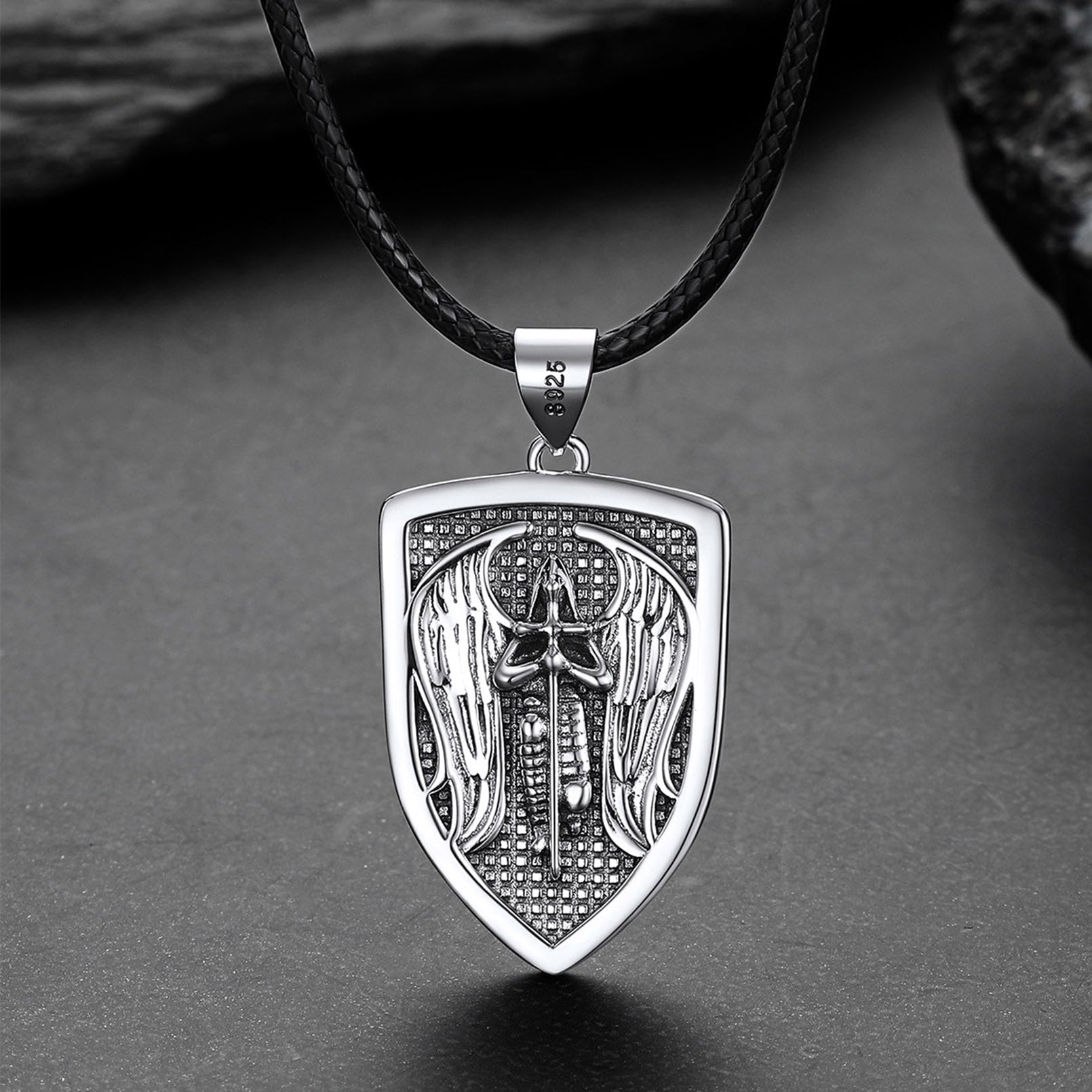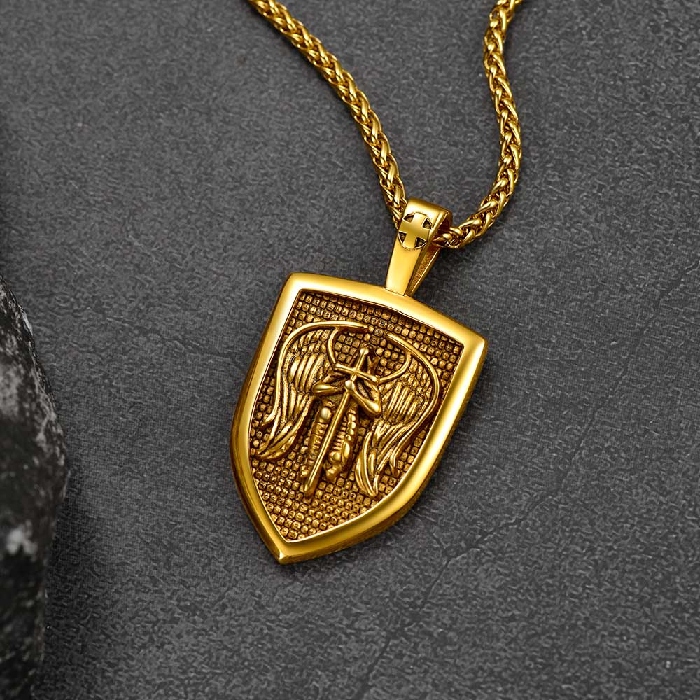 Colar de proteção com o Arcanjo São Miguel para homens. Use este colar de amuleto para proteger seus entes queridos. Feito de aço inoxidável 316L com design masculino, hipoalergênico, livre de níquel e chumbo, adequado para uso prolongado. Presente perfeito para policiais, bombeiros, soldados e aqueles que protegem os outros.