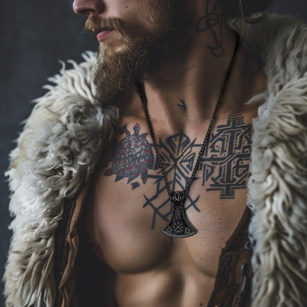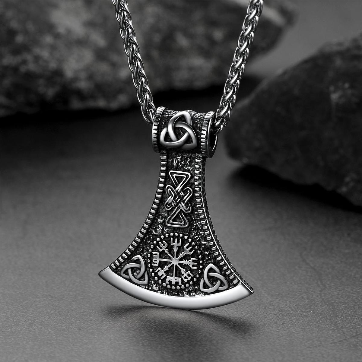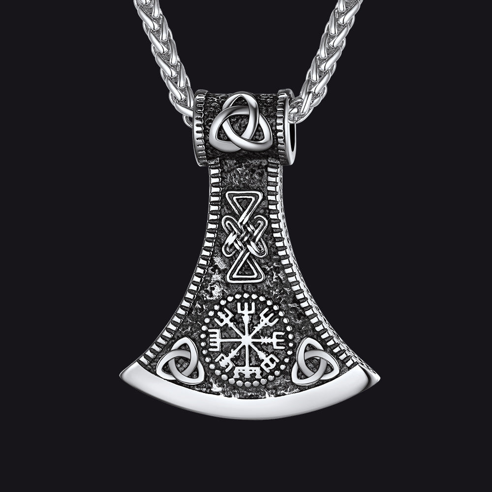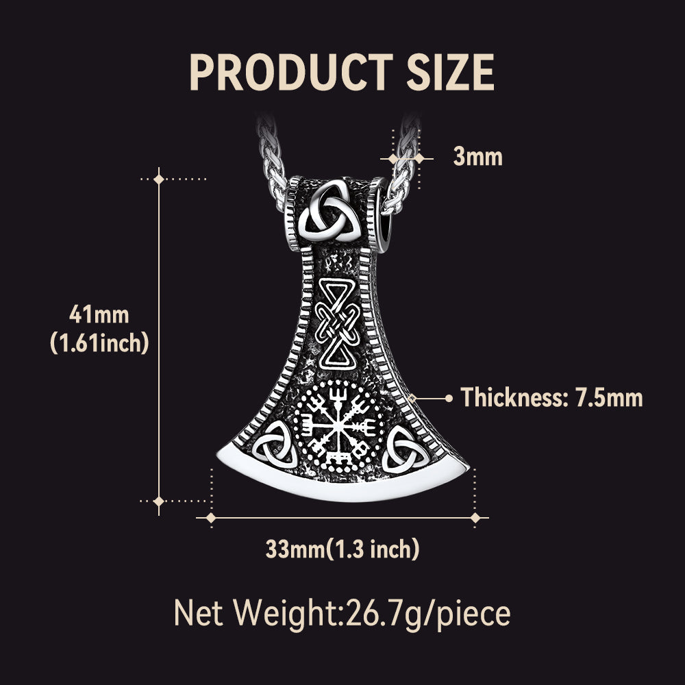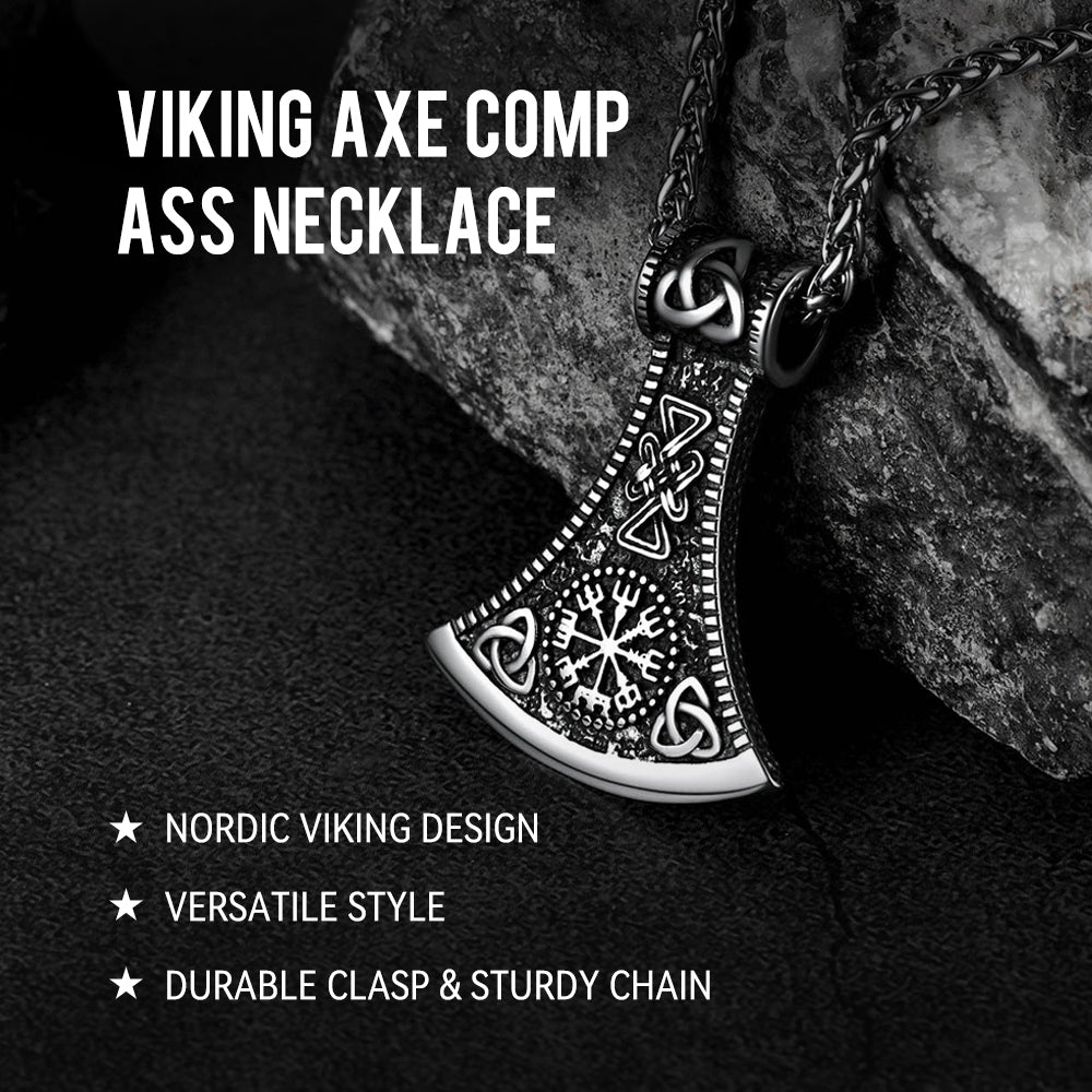 O colar com pingente de machado viking e Vegvisirs é um símbolo de poder e força. A bússola oferece proteção e orientação para aqueles que se sentem perdidos na própria vida. Feito de aço inoxidável 316L, hipoalergênico e livre de chumbo. Este colar viking é uma escolha valiosa para pai, marido, namorado, amigos, irmão ou até mesmo para você no Halloween, Natal, aniversário, festa, aniversário, Dia dos Pais ou Dia dos Namorados.
