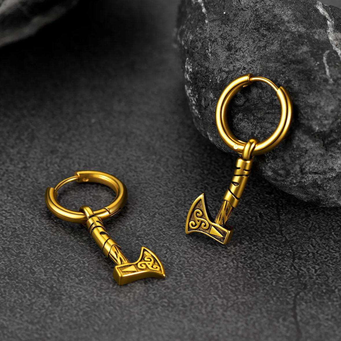 Inspirados na cultura nórdica e confeccionados com cuidado, estes brincos combinam simbolismo antigo com elegância moderna. Perfeitos para homens que apreciam acessórios ousados e cheios de significado.