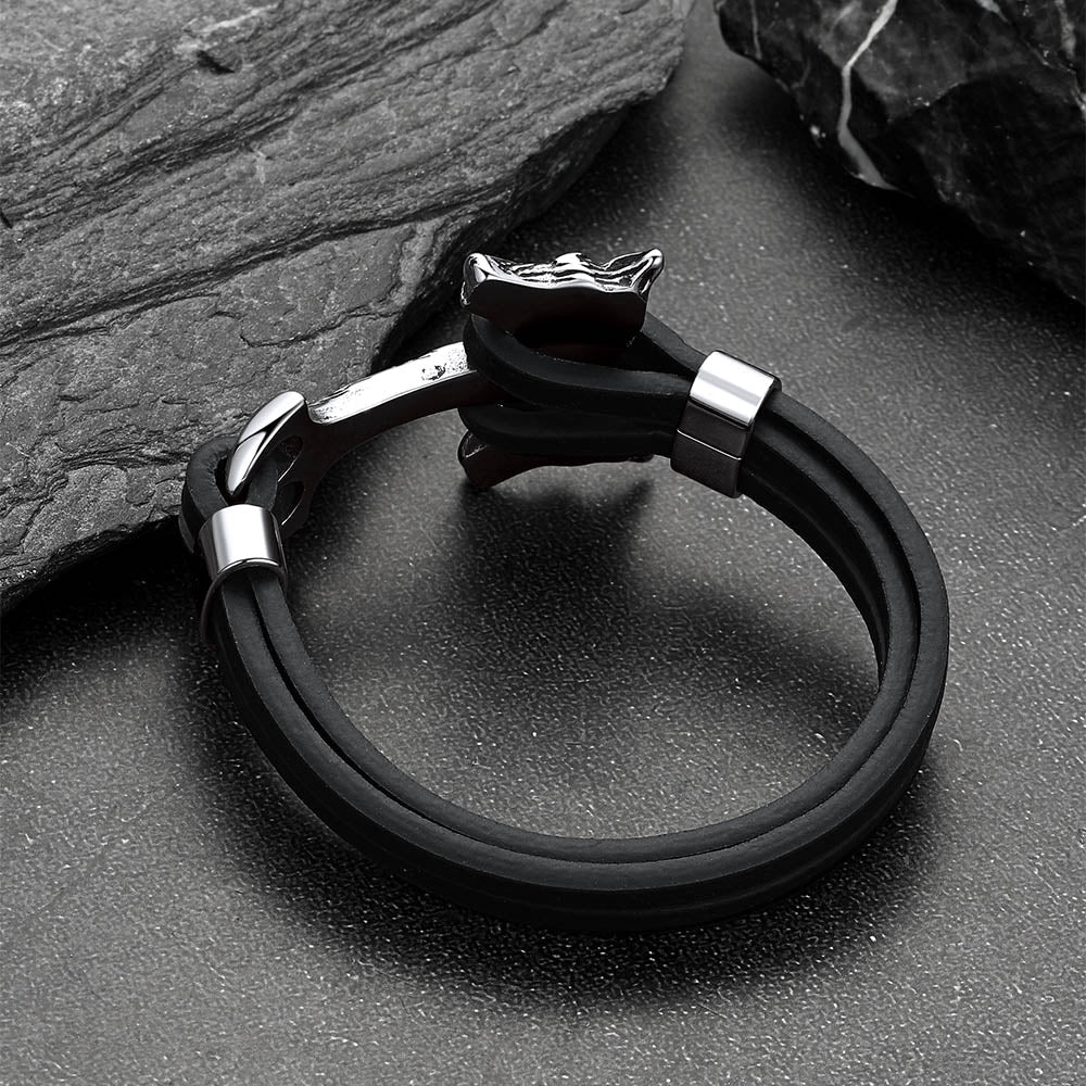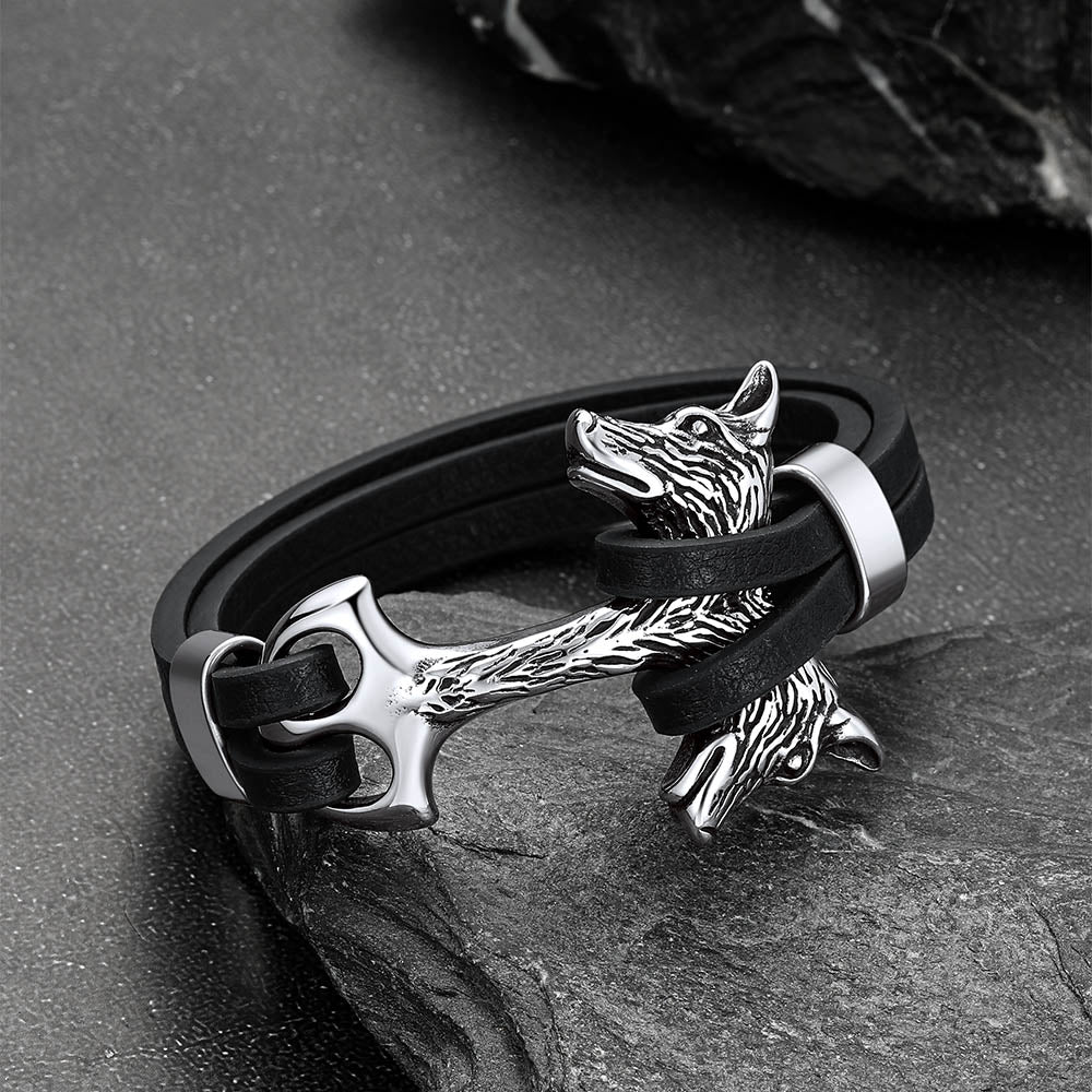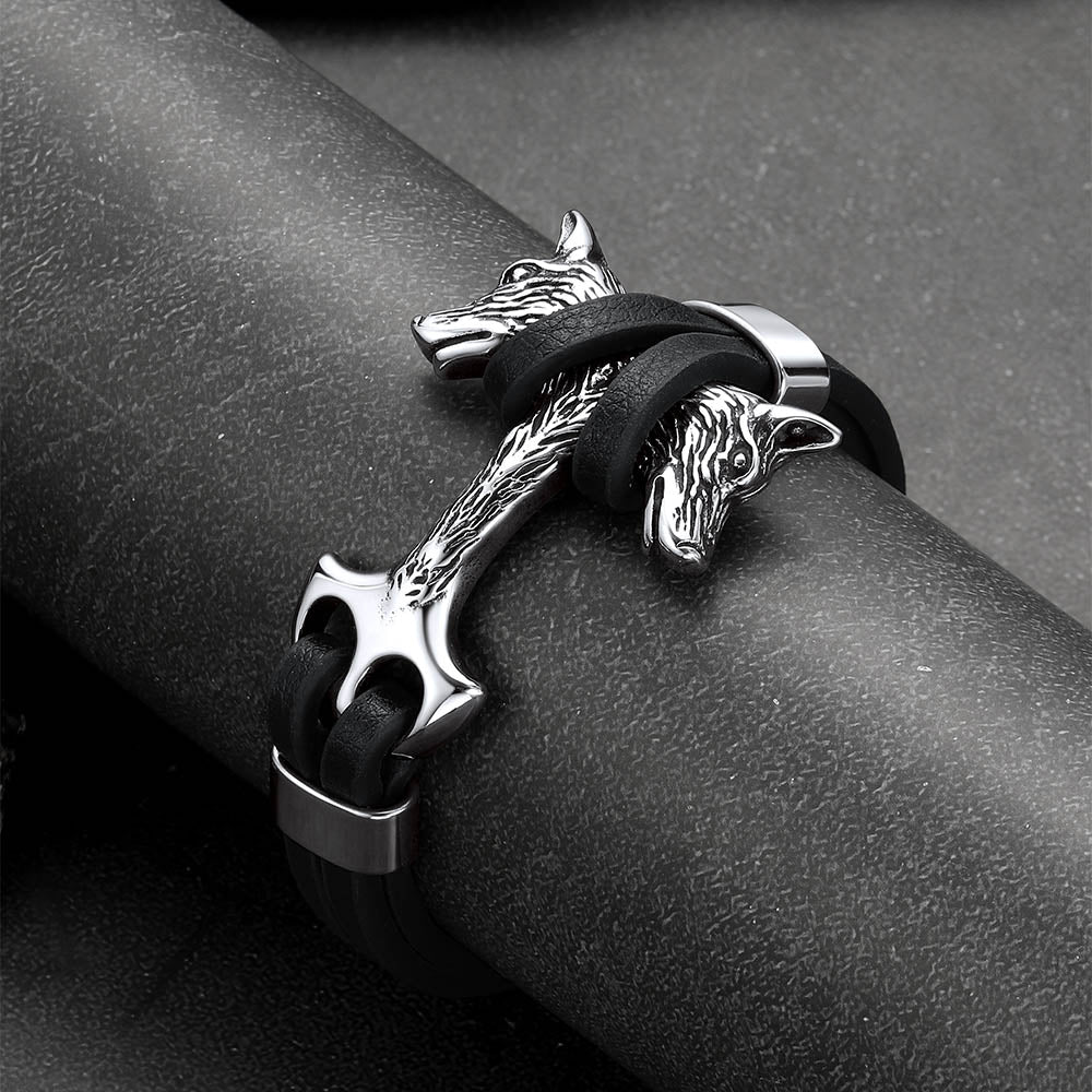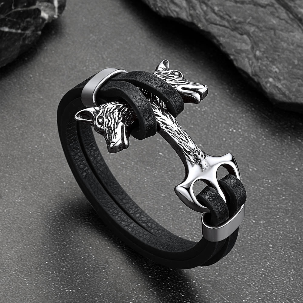 Liberte o seu guerreiro interior com esta Pulseira Masculina de Couro Viking com Cabeça de Lobo. Com duas cabeças de lobo elaboradamente trabalhadas, esta pulseira se inspira na mitologia nórdica, simbolizando força, lealdade e proteção destemida. Feita de couro preto premium e aço inoxidável durável, ela foi projetada para uso diário com um toque ousado e masculino.