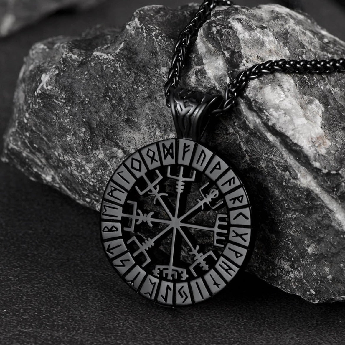 Vegvisir significa "placa de trânsito" ou "desbravador". Os vikings carregam Vegvisir consigo porque acreditam que este símbolo os guiará ao seu destino ideal. As Runas são mais do que apenas o alfabeto; acredita-se que elas contêm um poder inerente. Conferem força e proteção a quem as usa.