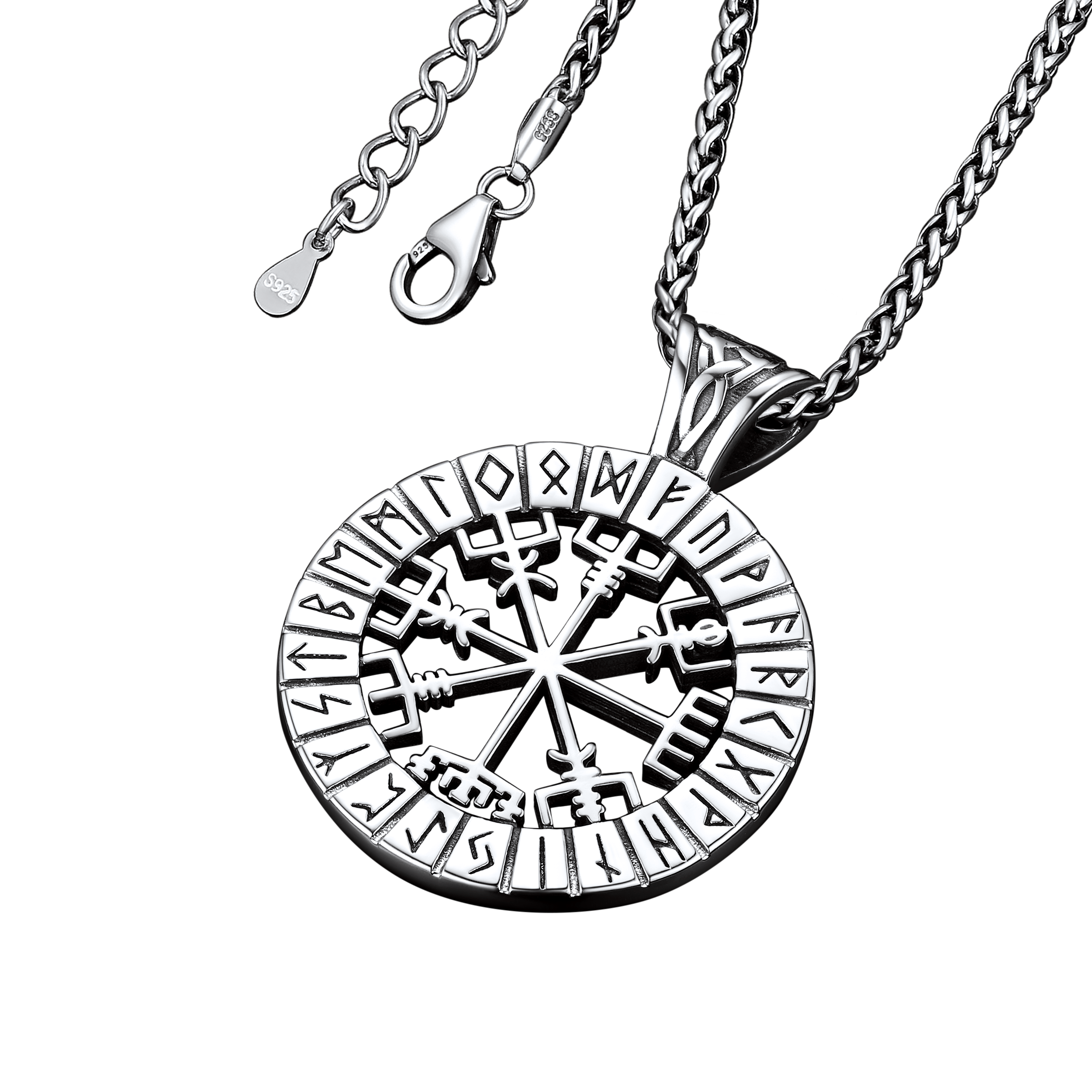 Colar masculino com medalhão e bússola Viking Vegvisir, com runa ao redor, design retrô vintage. Feito de aço inoxidável, hipoalergênico e livre de chumbo. Este colar com bússola Viking é uma escolha valiosa para um pai, marido, namorado, amigo, irmão ou até mesmo para você no Halloween, Natal, aniversário, festa, aniversário, Dia dos Pais ou para uso diário.