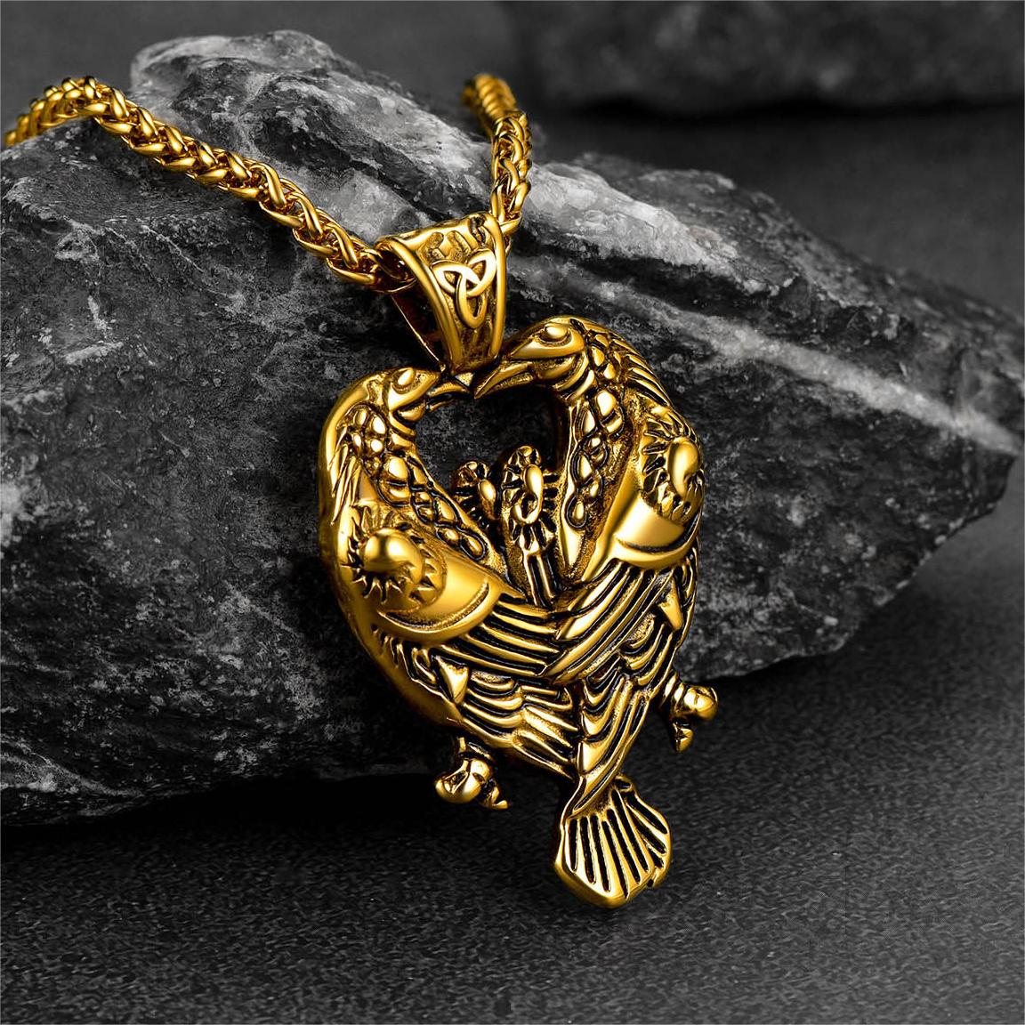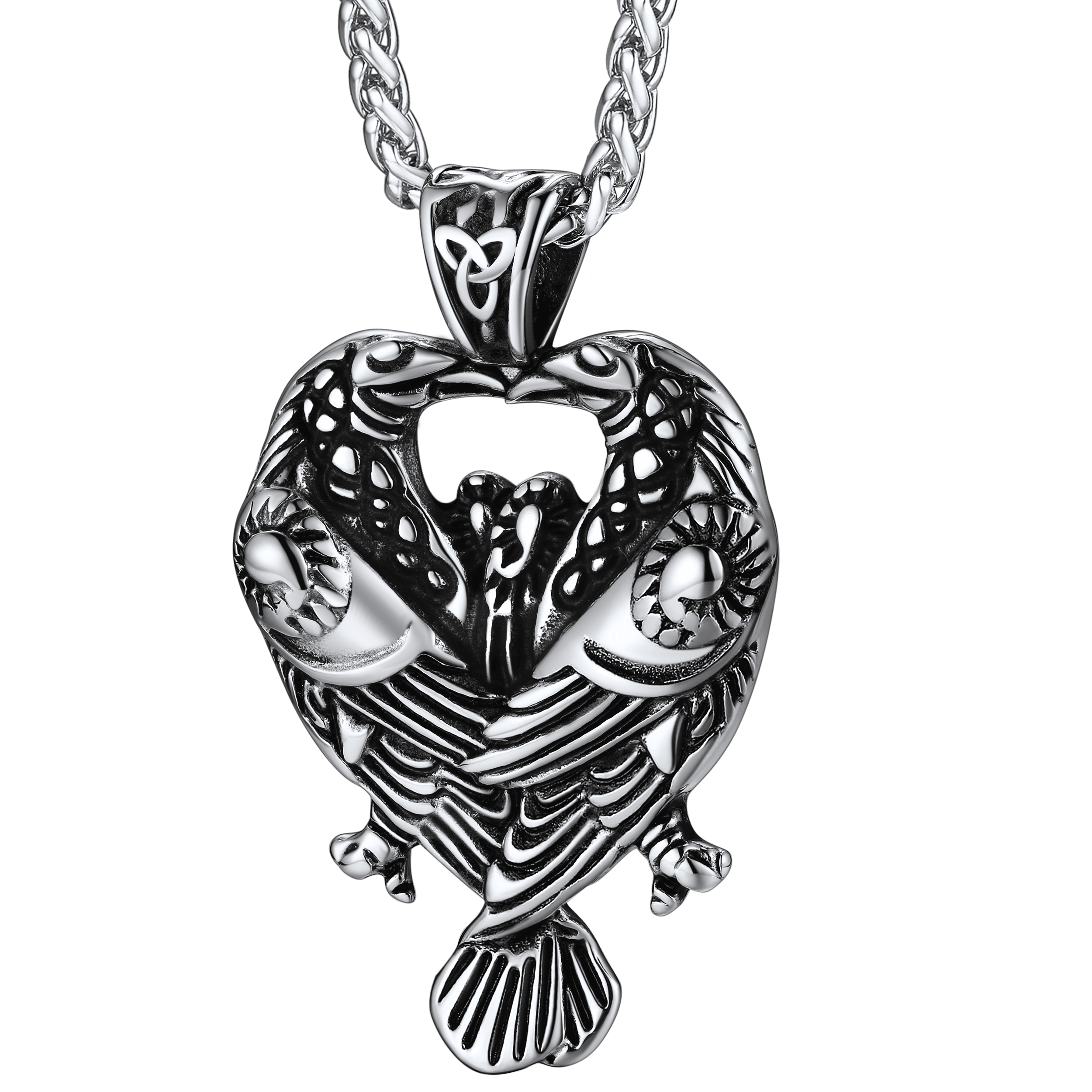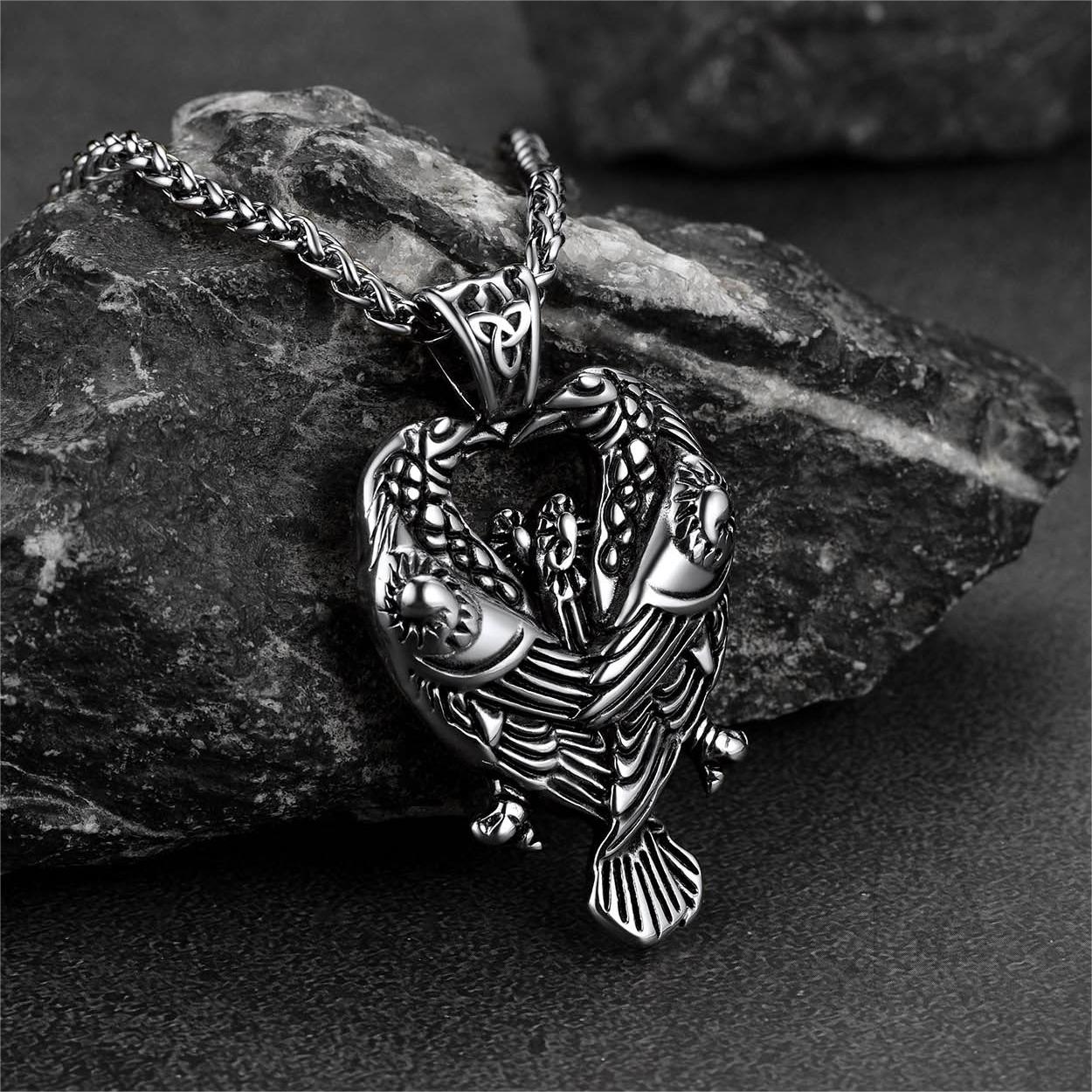 O colar de corvo combina o design elegante com a vibe nórdica. O colar masculino Viking com dois corvos é hipoalergênico. Este colar Viking com corvo é um presente maravilhoso para você, sua família, amigos e outras pessoas queridas em aniversários, Dia dos Pais, banquetes, Dia de Ação de Graças, Dia dos Namorados, Natal, etc.