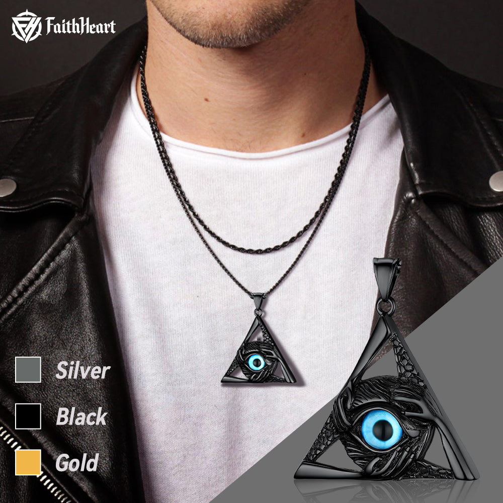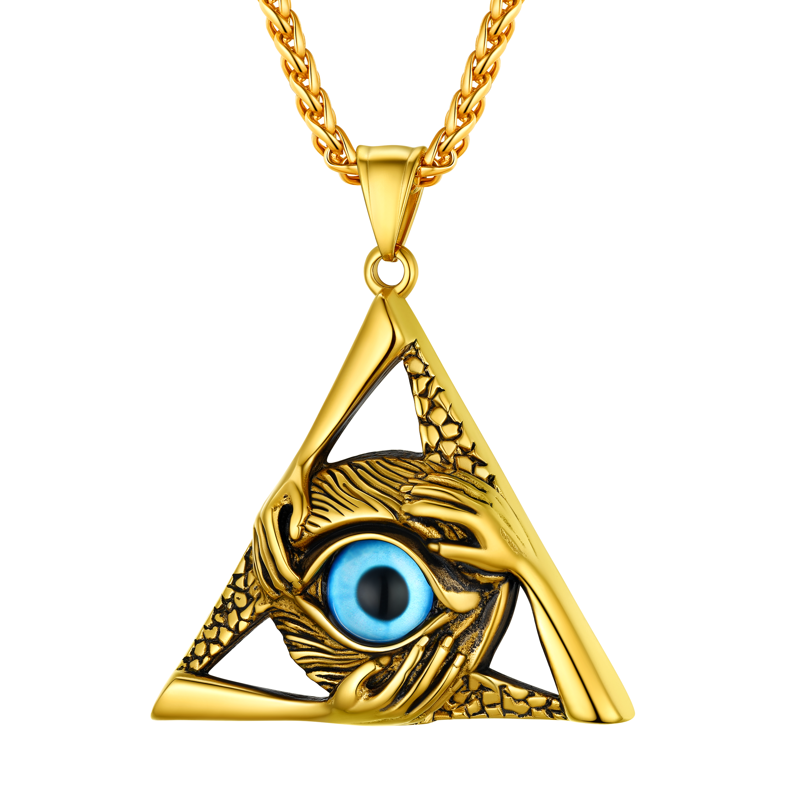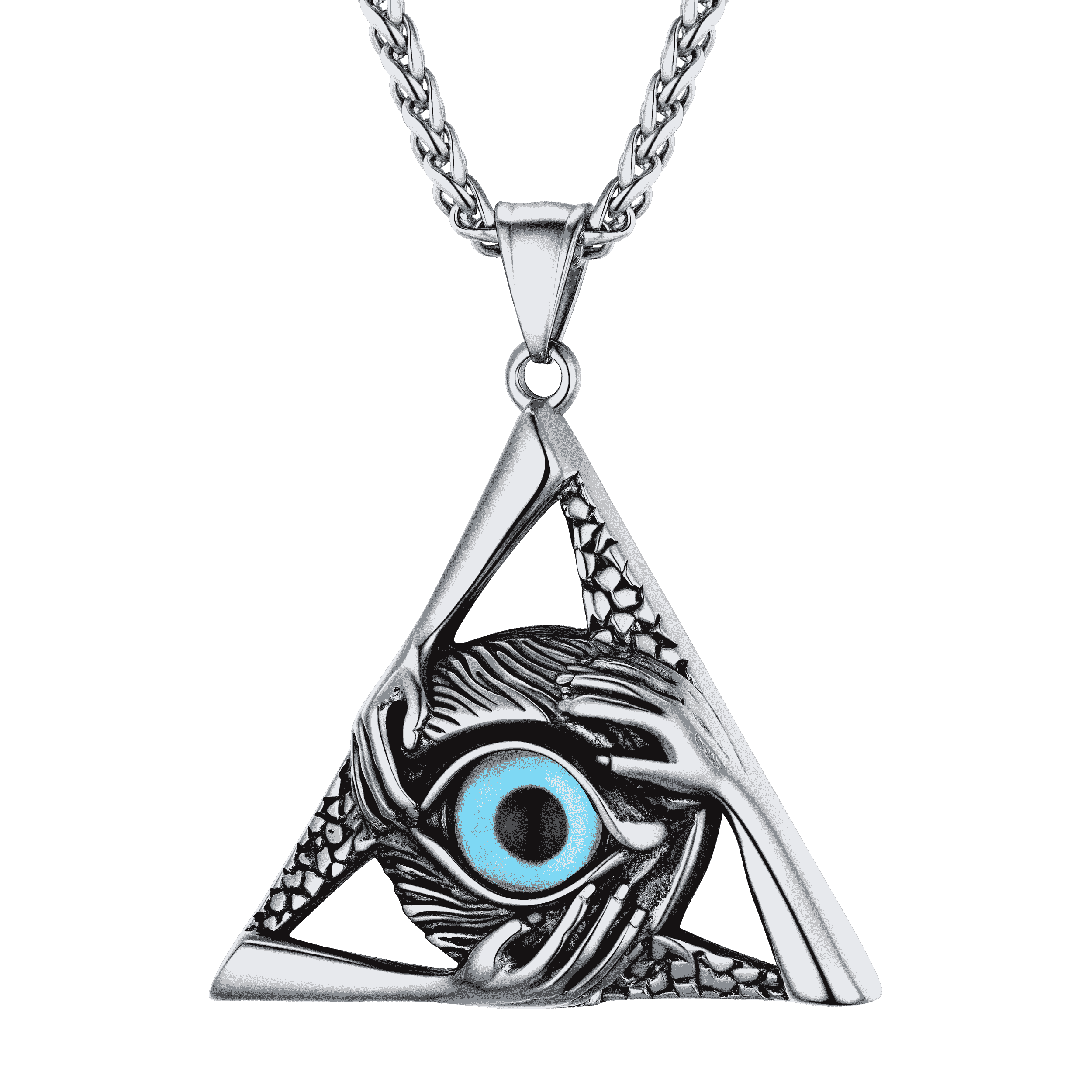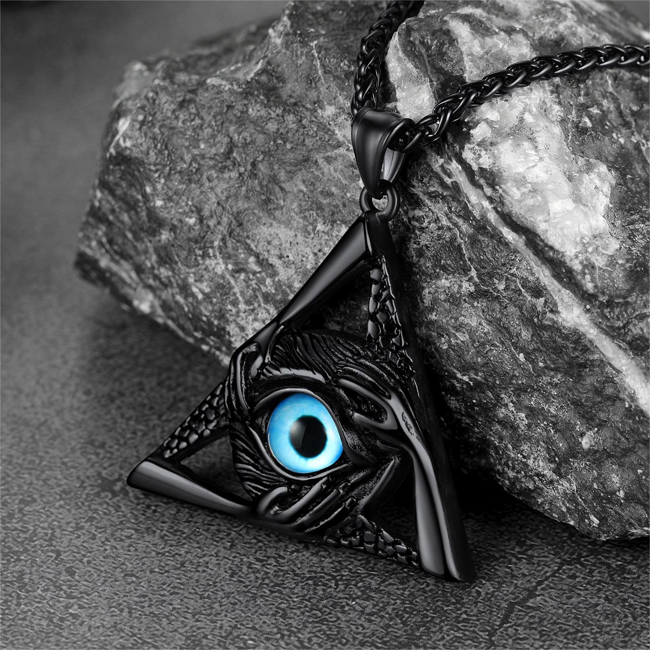 O mau-olhado simboliza o guardião, bloqueando todas as coisas ruins e trazendo boa sorte. Colar vintage com amuleto triangular detalhado, colar de proteção, feito de aço inoxidável de alta qualidade, sem chumbo e níquel. O colar com amuleto do mau-olhado pode ser um presente perfeito para seus entes queridos, tornando-se uma lembrança preciosa.