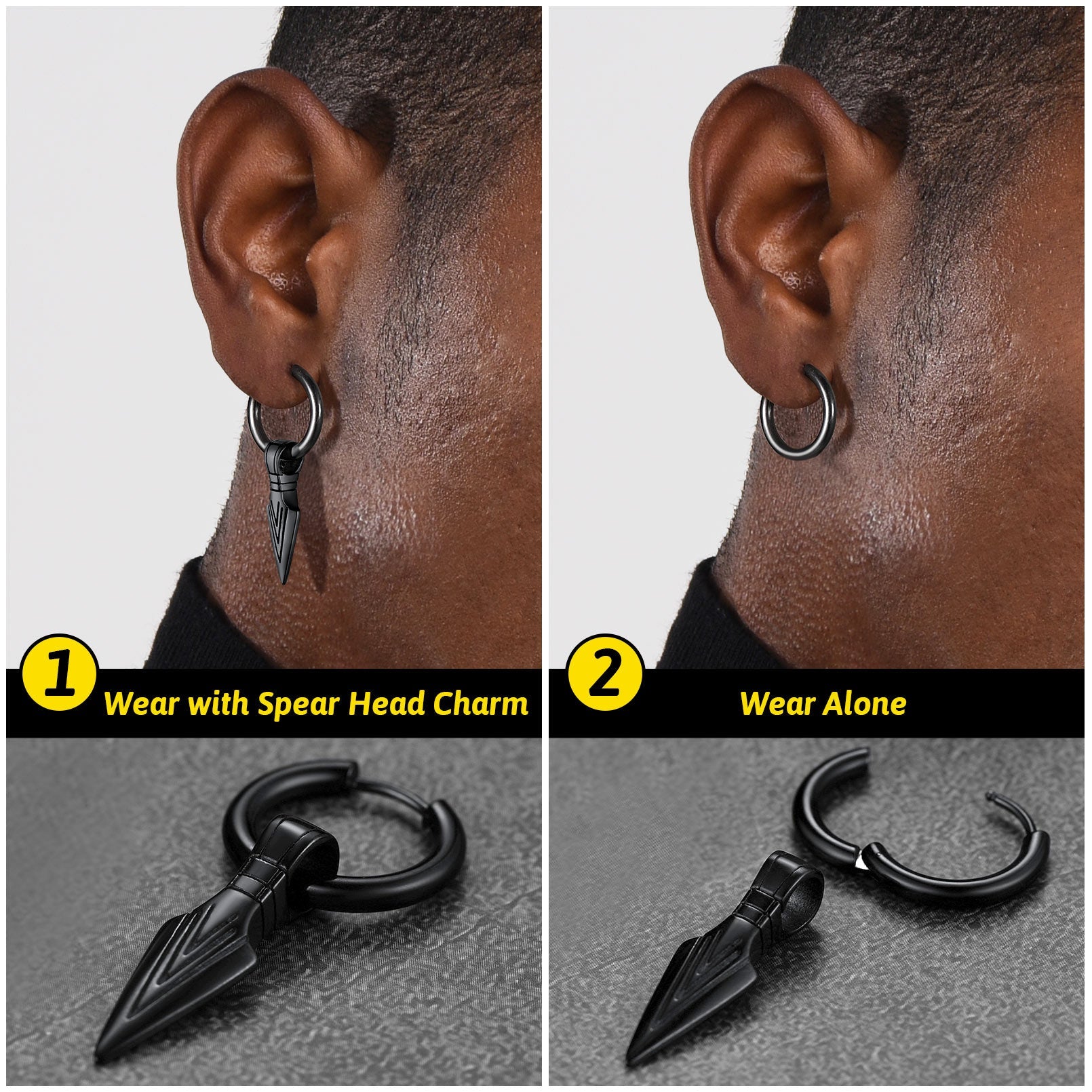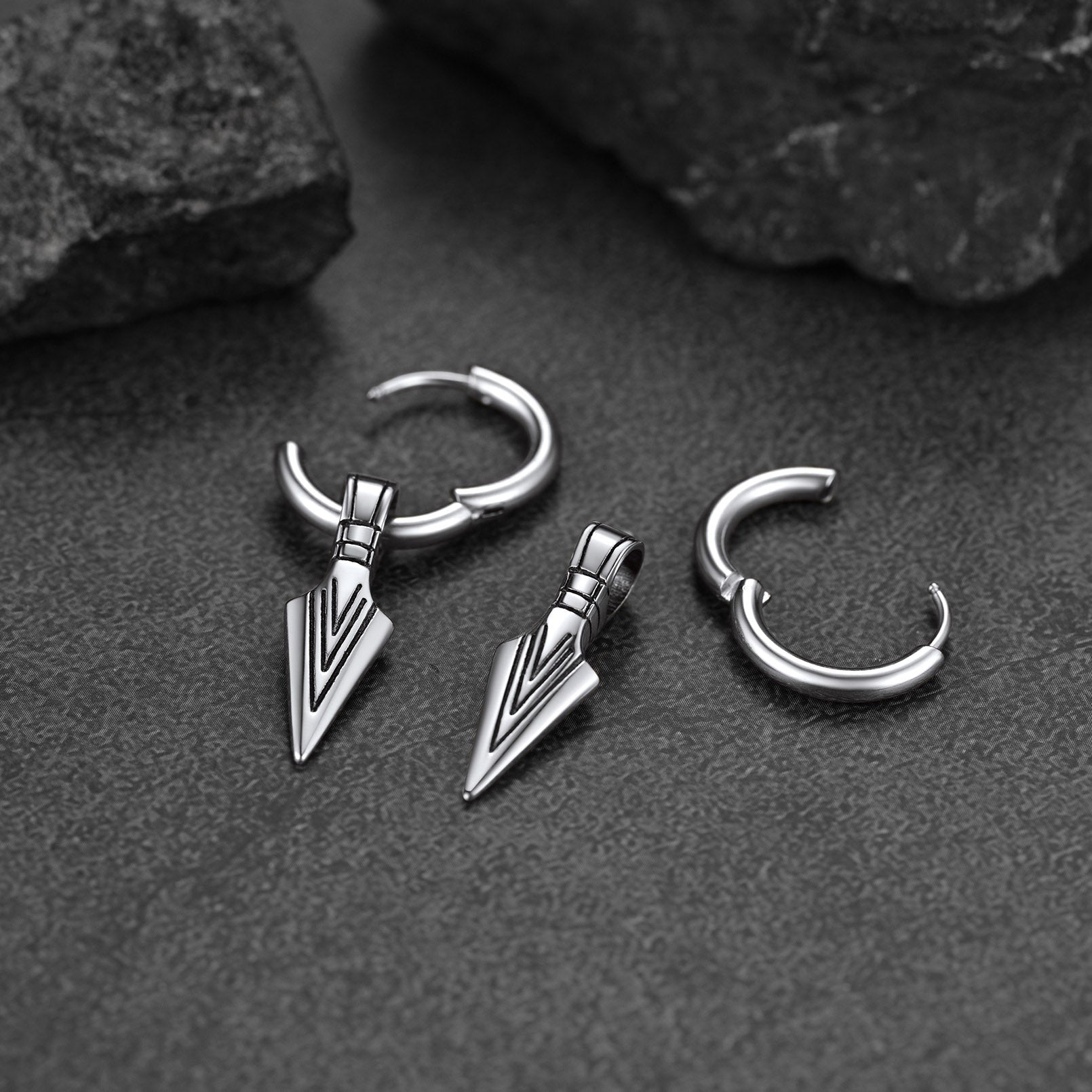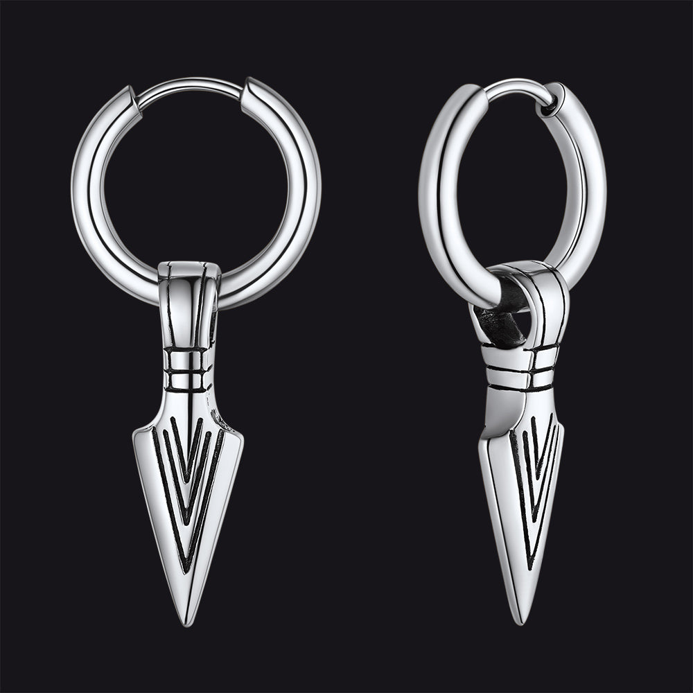 Brincos de argola com ponta de flecha e runa viking nórdica, Gungnir, para homens